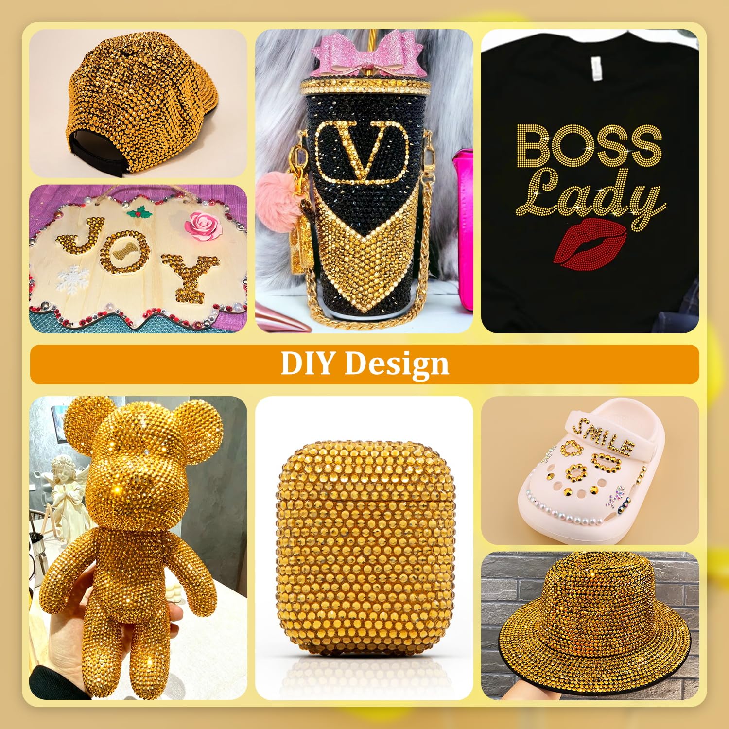 Resin Rhinestones for Crafting, 2 Boxeses Gold Multi Sizes Flatback Bedazzling Crystals for Crafts Nail Art Decoration, Non Hotfix Gems Charms for Tumbler Shoes Clothing Fabric Face Makeup