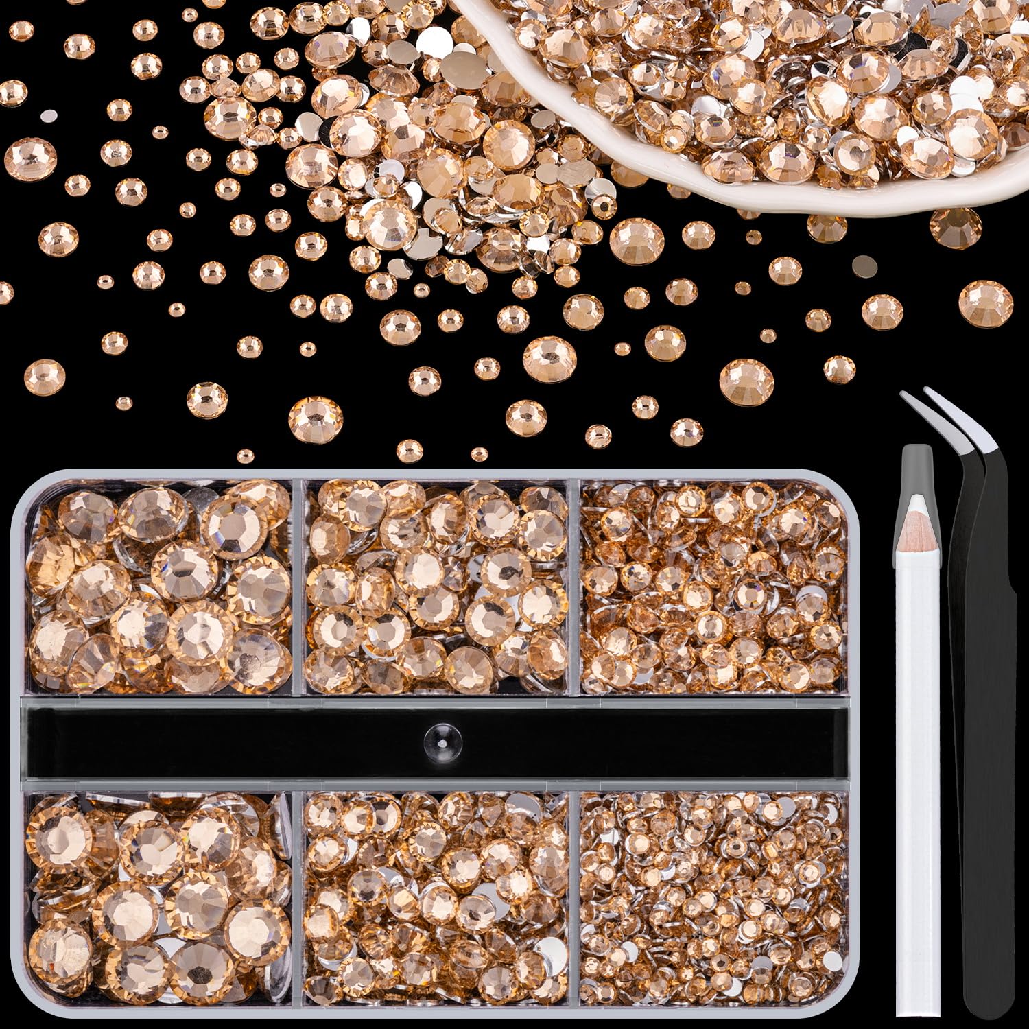 Resin Rhinestones for Crafting, 1 Box Champagne Multi Sizes Flatback Bedazzling Crystals for Crafts Nail Art Deco, Non Hotfix Gems Charms for Tumbler Shoes Clothing Fabric Face Makeup