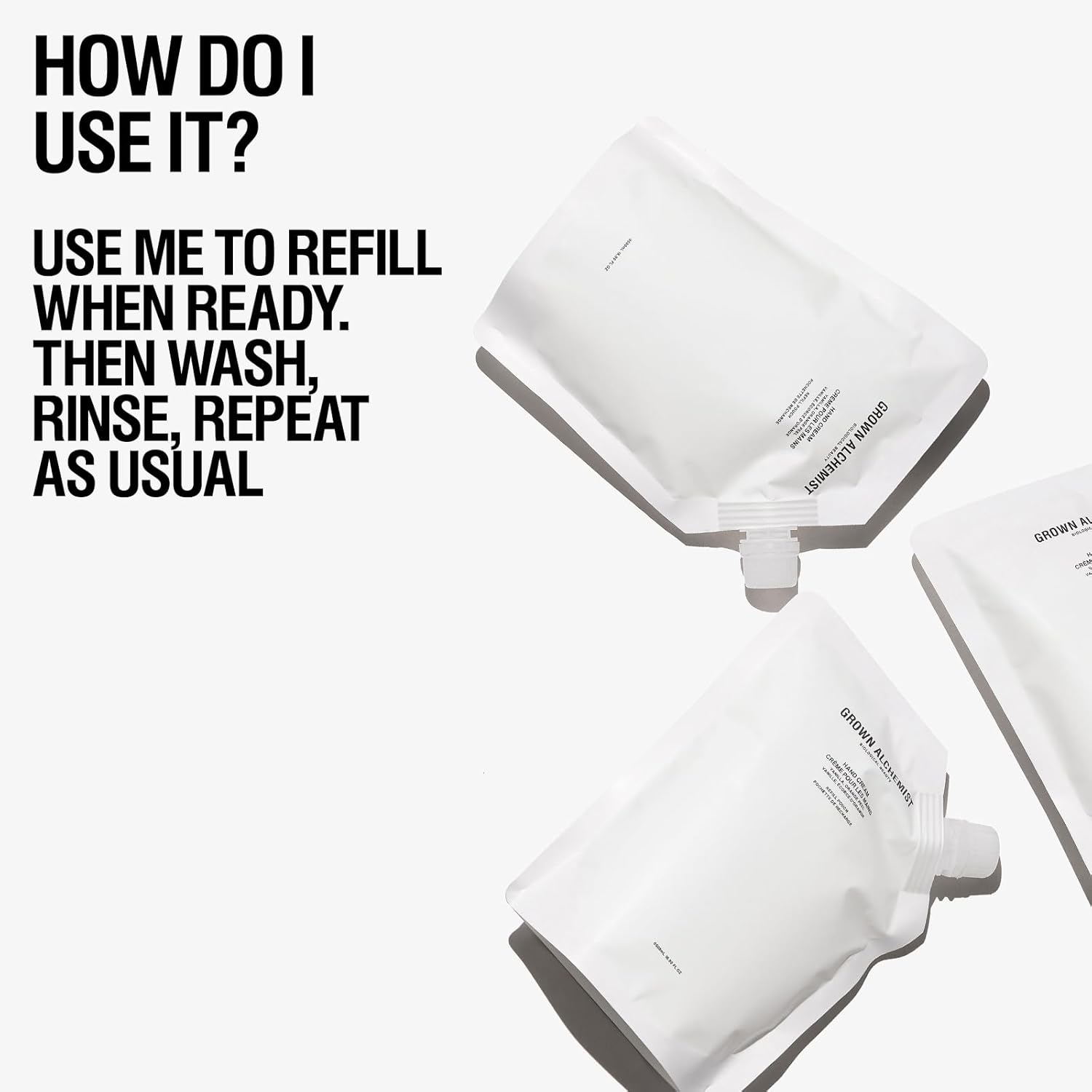 - GROWN ALCHEMIST. Hand Cream. Vanilla, Orange Peel + REFILL DUO Kit (500ml each). Together in a value pack the original hand cream pump bottle with a refill pouch to keep your hands moisturized and prevent dryness.
