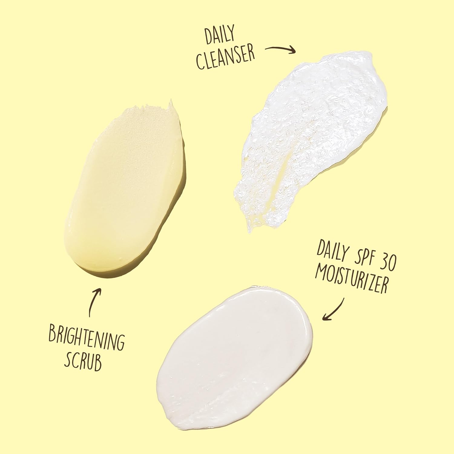 - KIT INCLUDES: 2 FL OZ Daily Cleanser, 1 OZ Brightening Face Scrub, and 1 FL OZ Daily Sunscreen Moisturizer SPF 30.