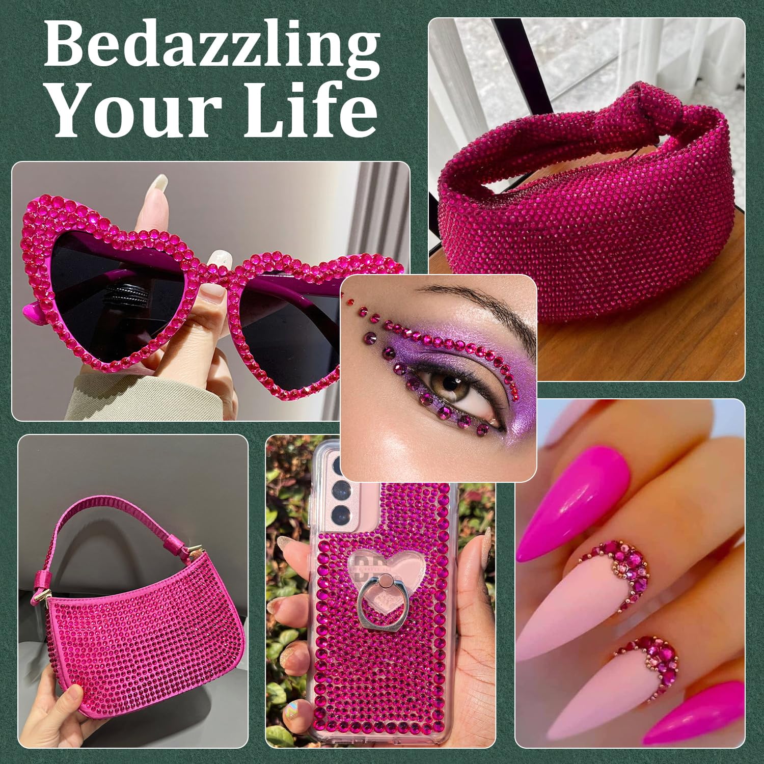 Resin Rhinestones for Crafting with B7000 Jewelry Glue, 2 Boxes Hot Pink Flatback Crystals with 3Pcs 10ml Glue for Bedazzling Crafts DIY Nail Art Makeup,Non Hotfix Gems for Clothing Shoes