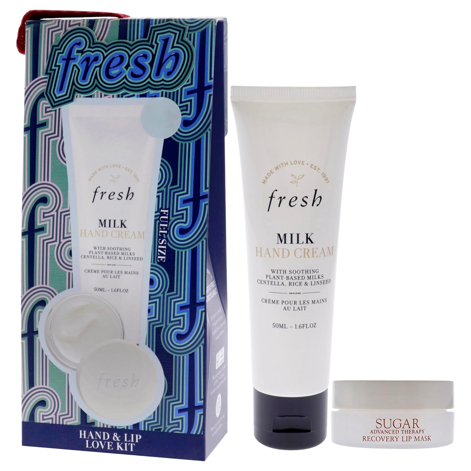 Fresh Hand And Lip Love Kit for Women - 2 Pc 1.6oz Milk Intensive Hand Cream, 0.3oz Sugar Recovery Lip Mask Advanced Therapy