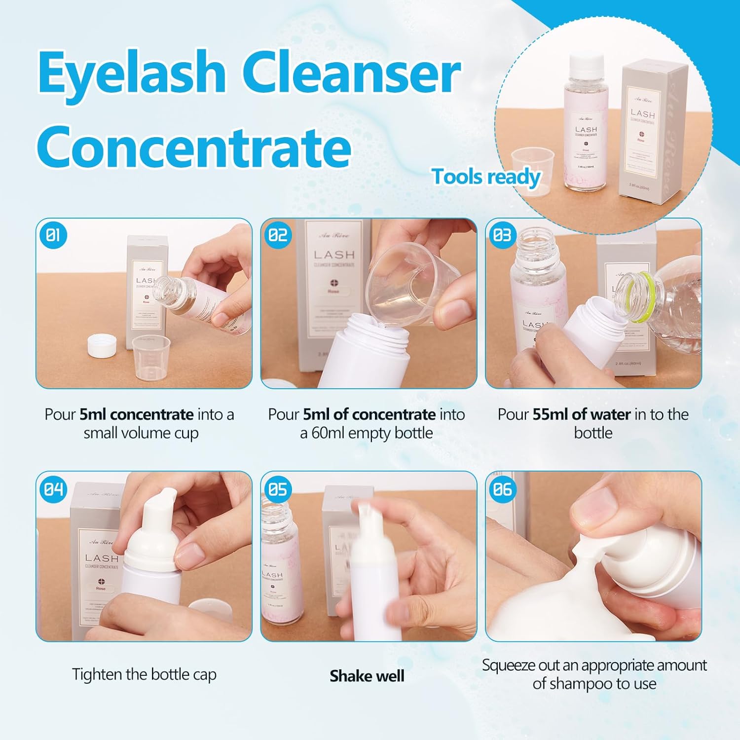 - AuReve Eyelash Cleansing Concentrate is designed to create a rich lathering lash bath shampoo that removes oils, smudges, and cosmetic residue from the lashes, face, and under-eye area for longer lasting lashes!