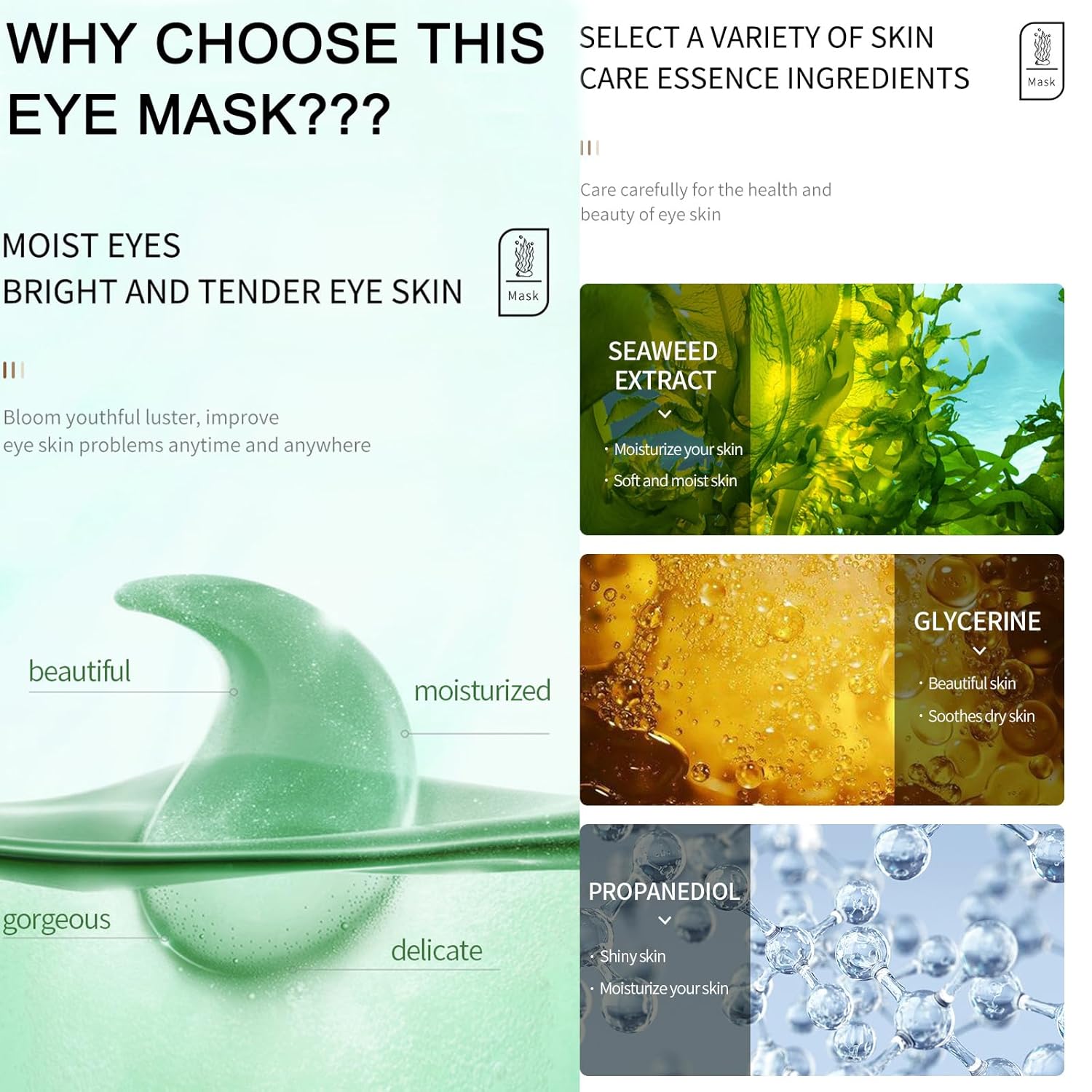 - Moisture Enhancement: Infused with a liquid serum, our eye masks provide deep hydration and a refreshing feel. Ideal for reducing puffiness and revitalizing tired eyes