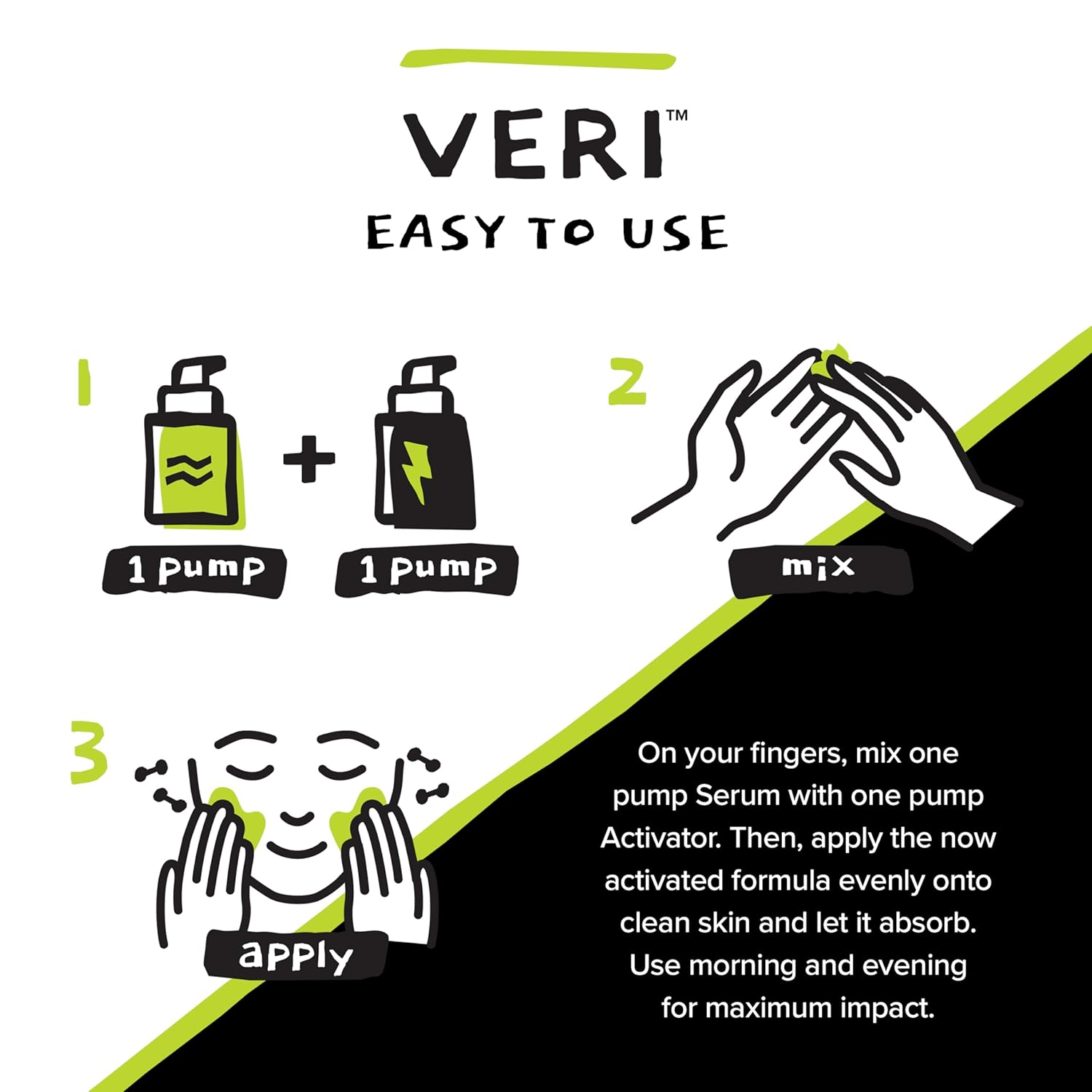 - SKINCARE IS NOW VERI SIMPLE – Trade your entire routine for the VERI Clear Skin System. Apply the VERI Clear Skin System to clean, dry skin twice a day to help clear and moisturize your skin. That’s it!