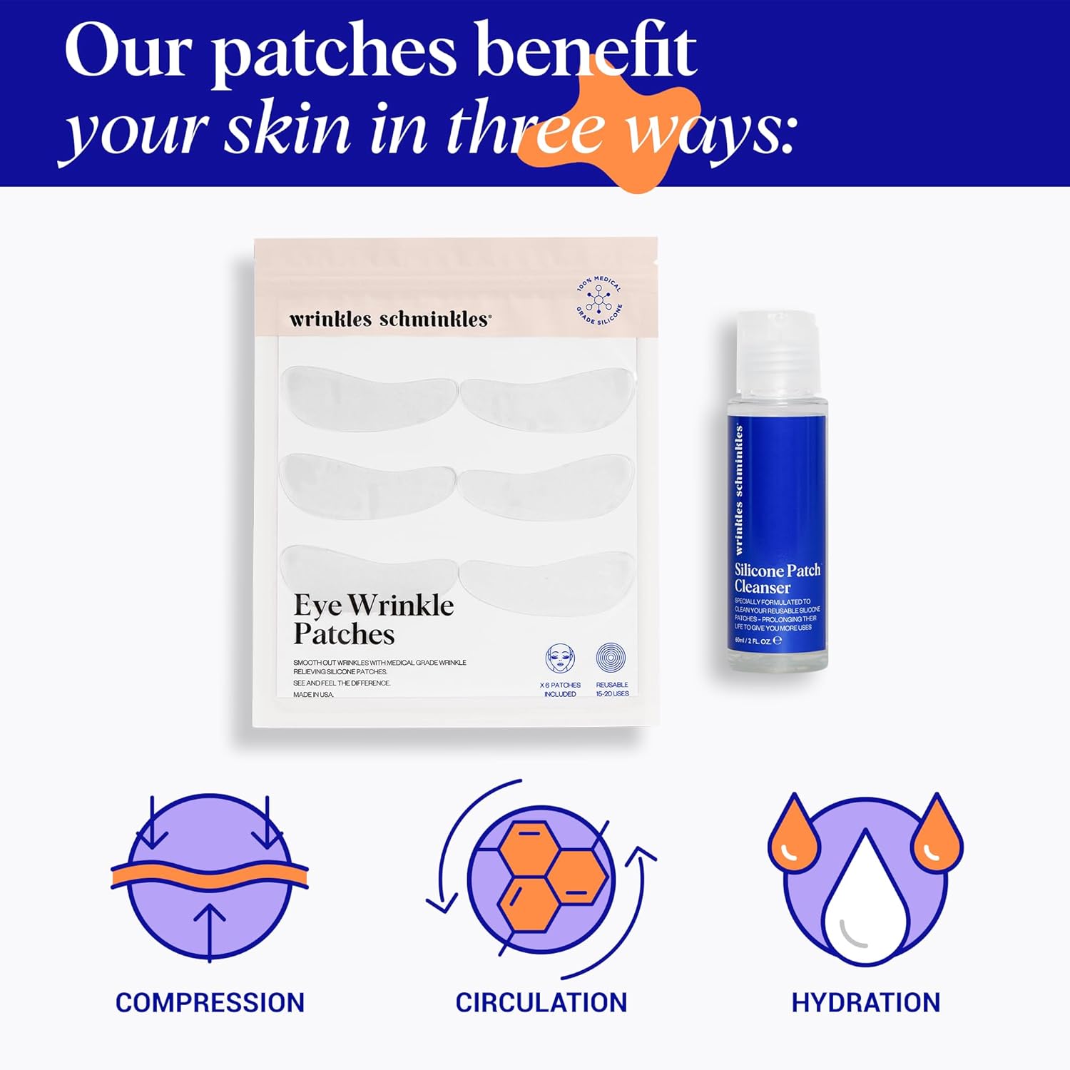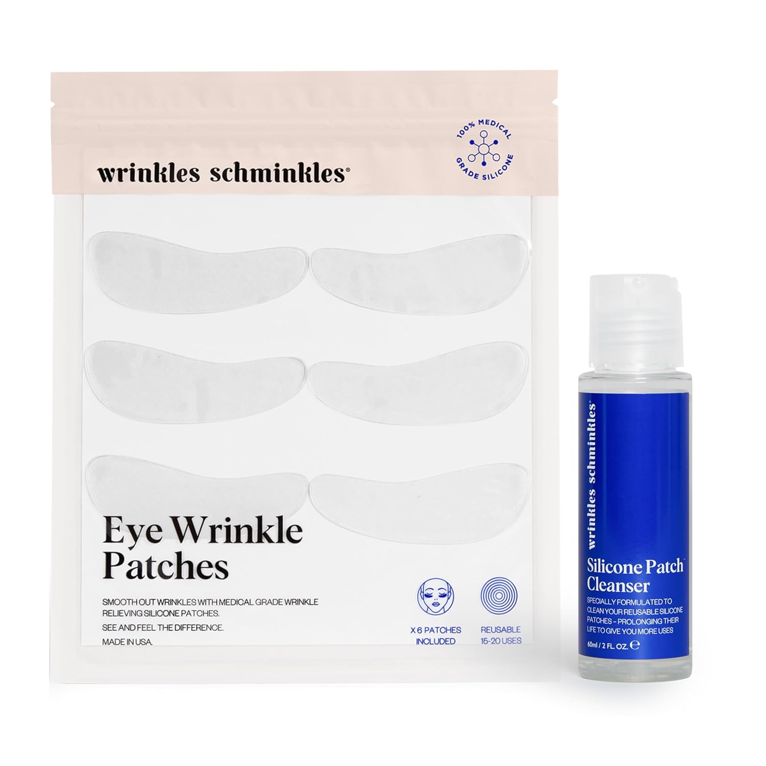 Wrinkles Schminkles Under Eye Wrinkle Starter Pack - Set of Reusable Under Eye Wrinkle Patches (3 pairs) + Silicone Patch Cleanser (2 oz) for Smoother Under Eyes & Fresh Look
