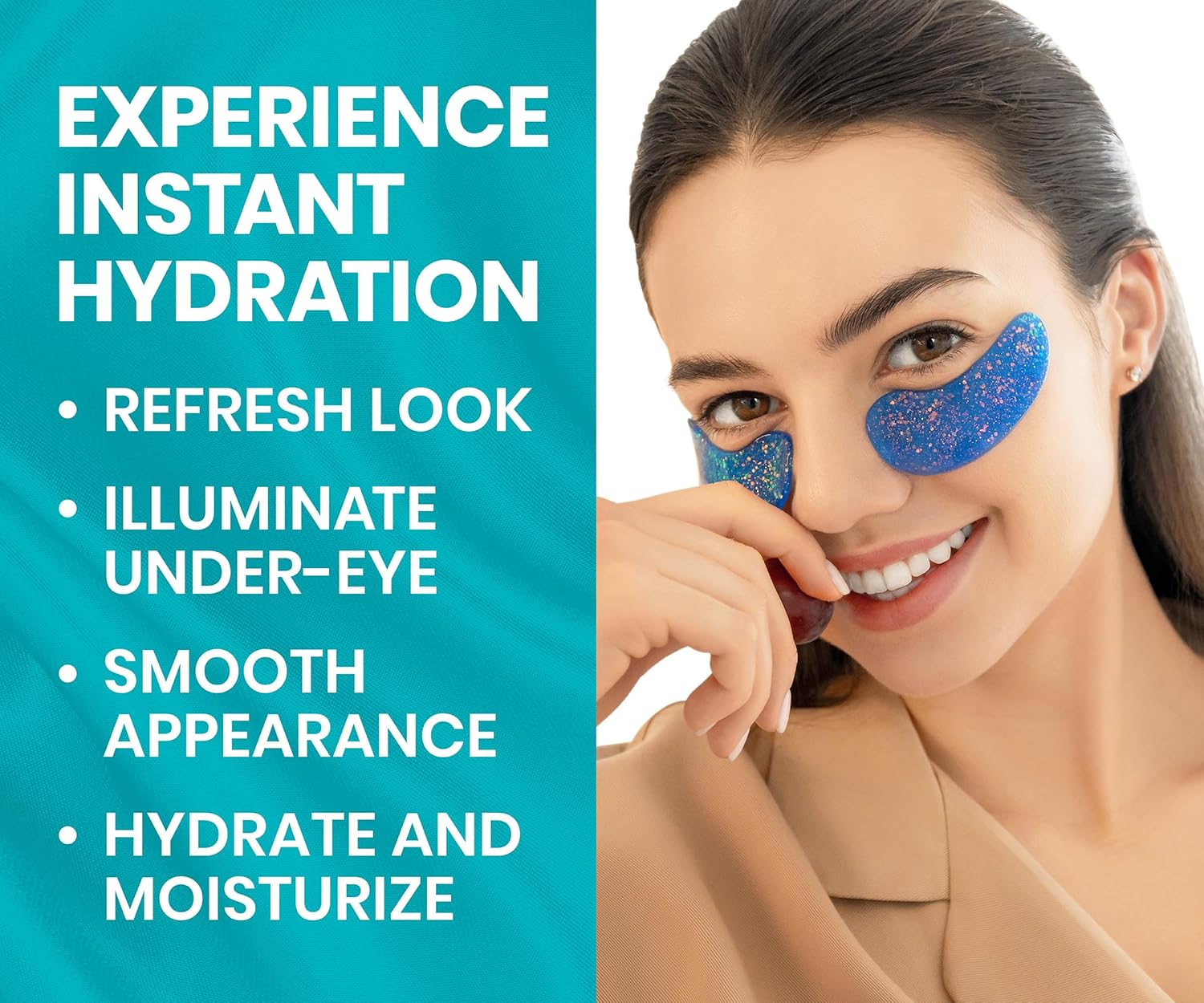 - DARK CIRCLES UNDER EYE TREATMENT FORMULATED FOR YOU – Indulge in luxury with your glitter under-eye mask patches, gentle for all skin types. Made with vitamin c, hyaluronic acid, collagen, pearl extract, and red algae. Never animal tested.