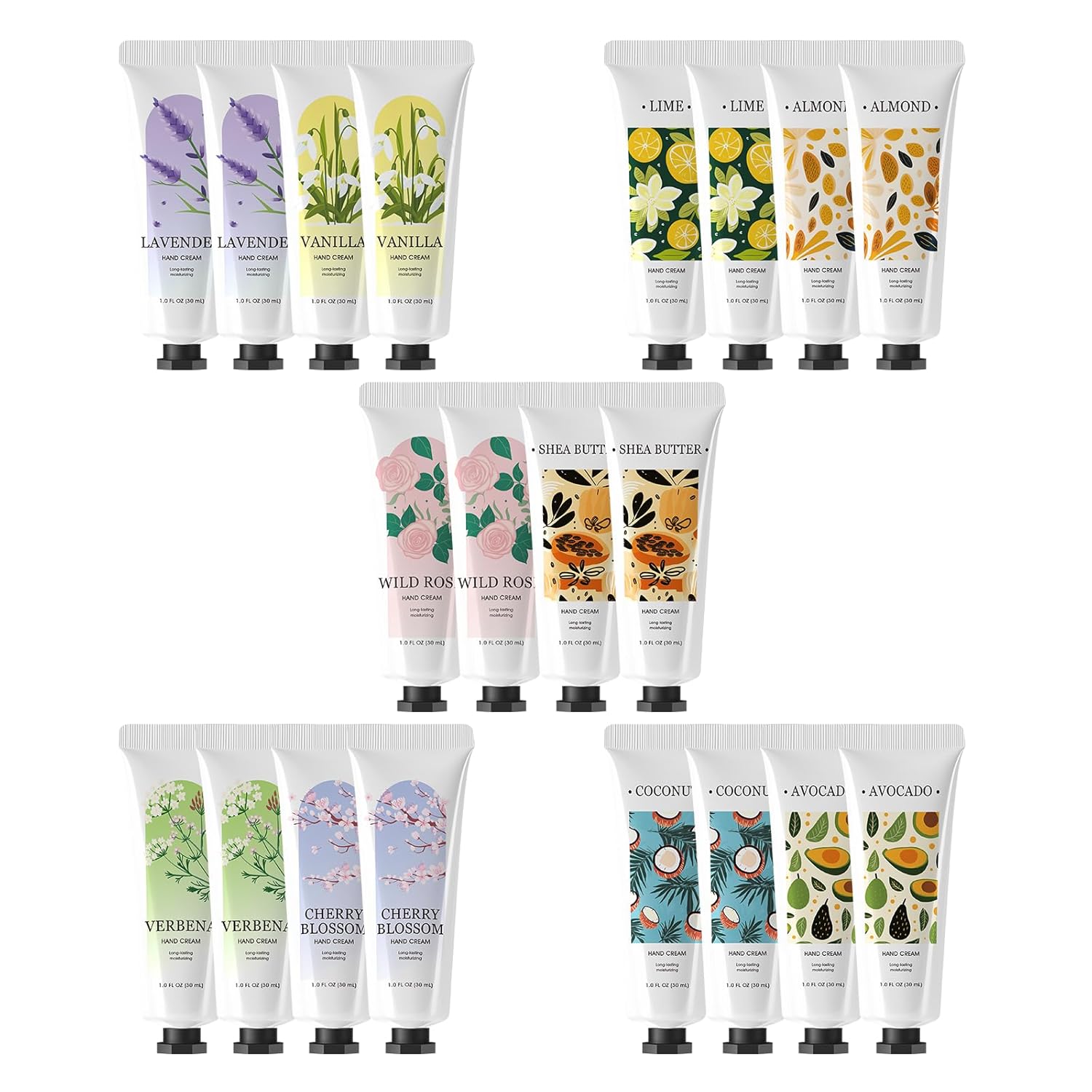 - 20 Pack and 10 Natural Scents for Every Mood β This hand cream set includes 10 delightful scents: lavender, vanilla, verbena, cherry blossom, wild rose, shea butter, coconut, lime, avocado, and almond. Each scent is naturally refreshing, making this hand lotion gift set both versatile and enjoyable for daily use. Perfect for anyone who loves a variety of mini hand lotion options.