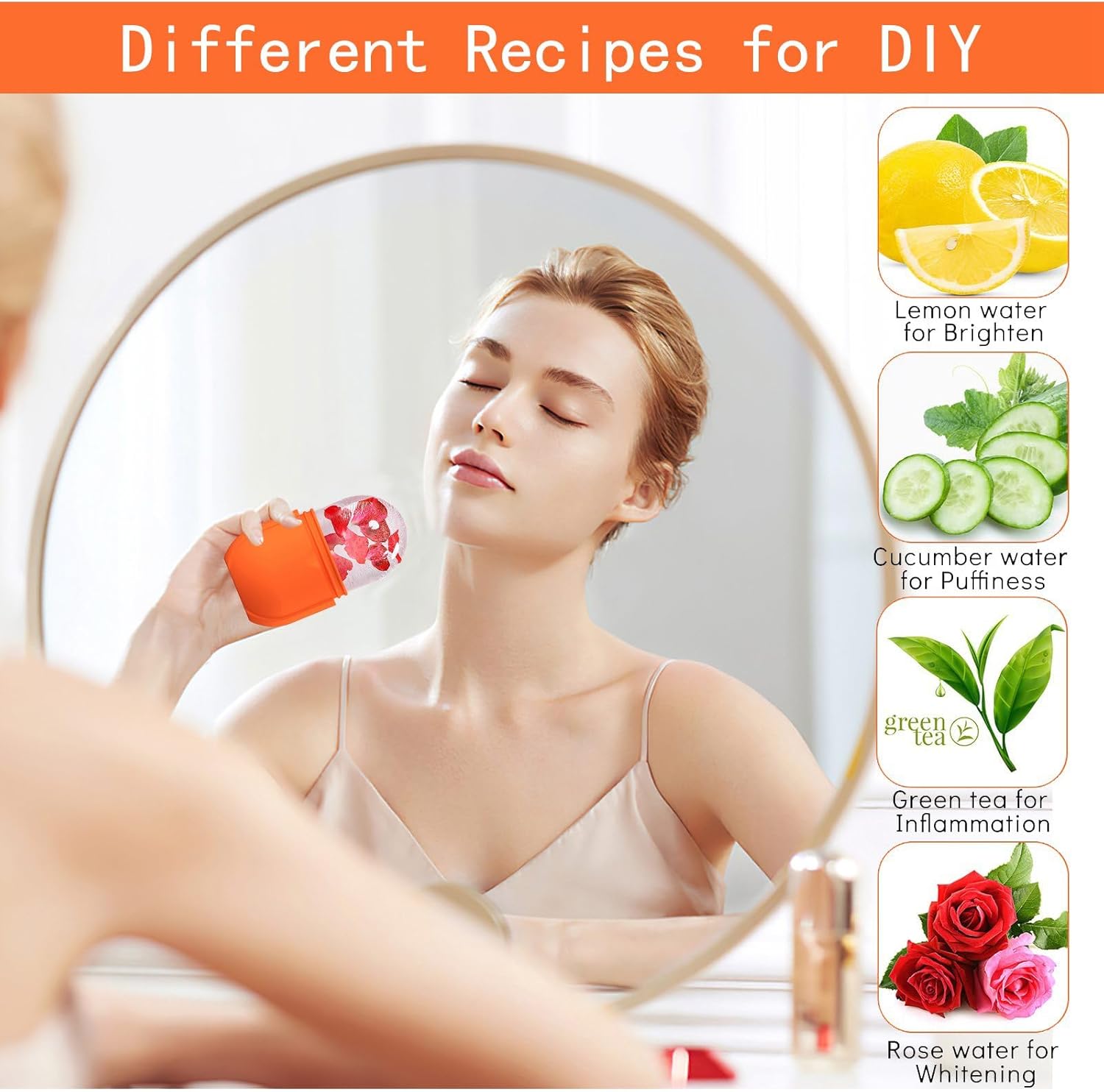 - 💎【IMPROVE SKIN】Facial ice rollers are very useful for improving skin conditions. You can use whitening lemonade, green tea, relieve the pressure of cucumber water, coconut milk, etc. to improve the skin, thereby creatively customizing recipes according to your skin needs.