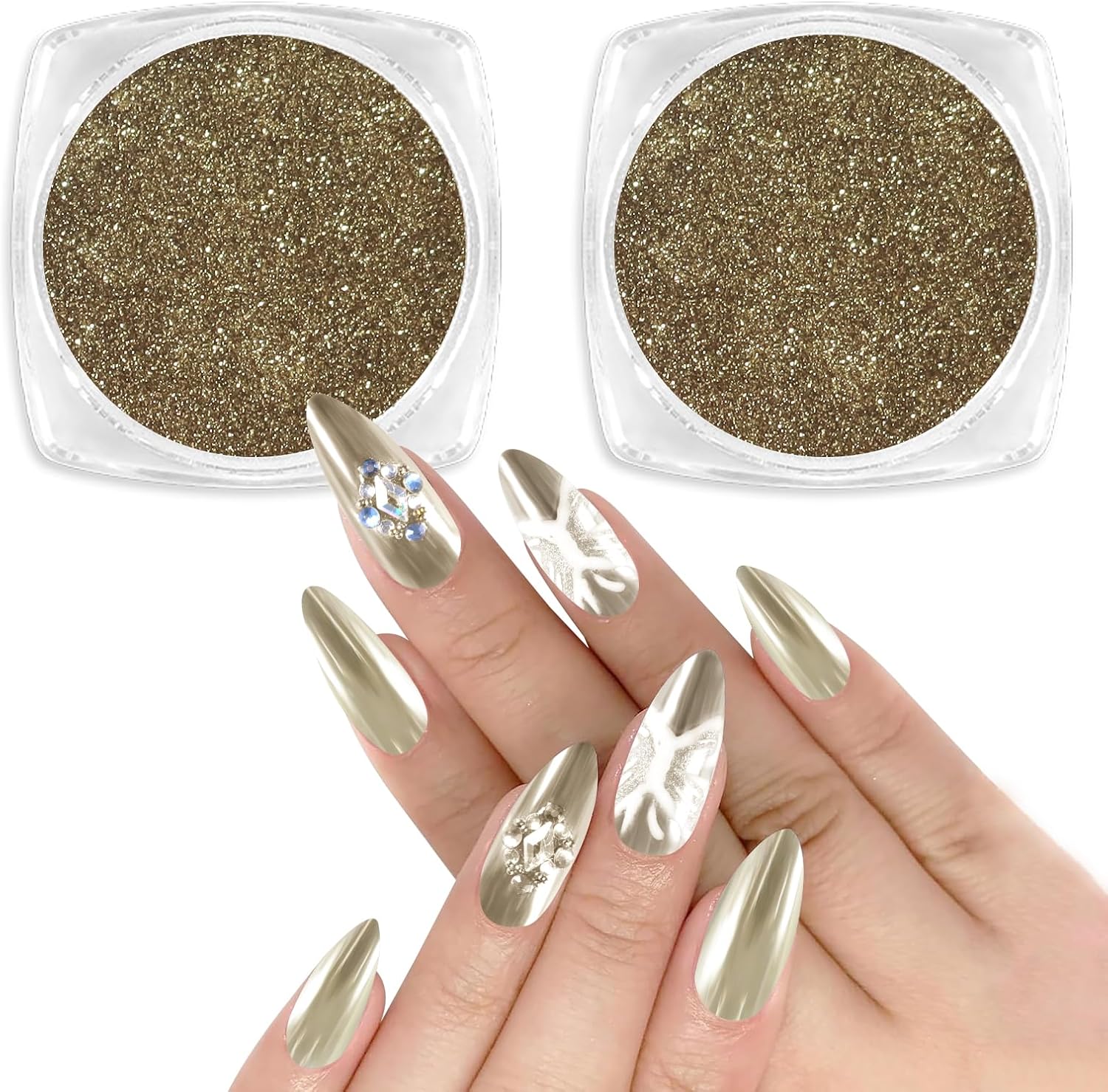 - Package Content: You will receive products including 2 jars of holographic chrome pigment powder in 2 colors and 2 eyeshadow sticks. Net content 1g(0.4oz)/jar, it can be applied for 120 nails and more. Just a little nail pigment powder to get an amazing metallic mirror effect.