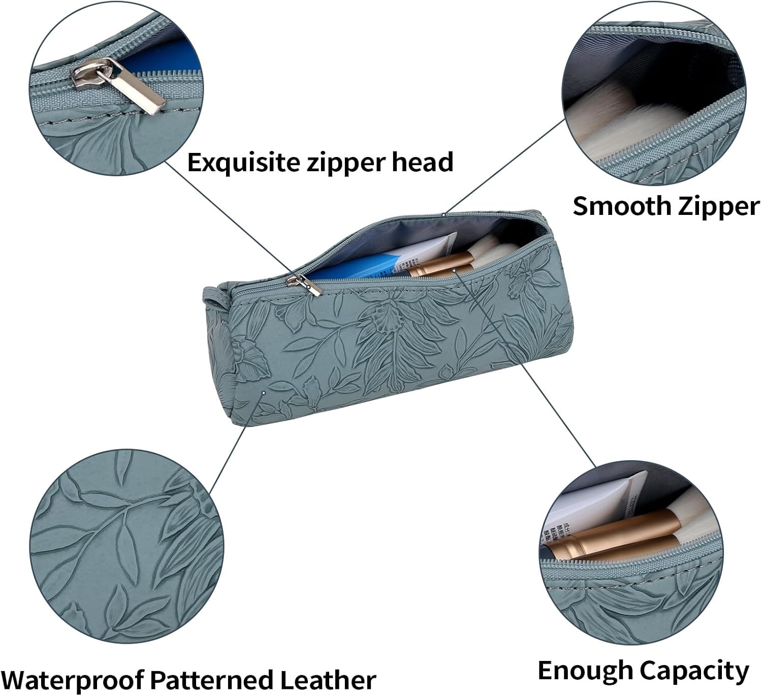 2pcs Set PU Leather Cosmetic Bag for Women - Floral Makeup Bag Portable Storage Purse for Makeup (Z-Blue-2 Case)