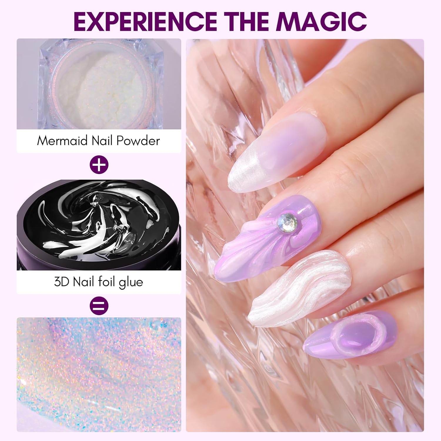 - Makartt Nail Glue - It helps you easily and quickly transfer the foil sticker's pattern. And then you can DIY your unique nail art design mixed with gel nail polish and mermaid nail chrome powder. Enjoy the DIY fun at home, and save your time and money.
