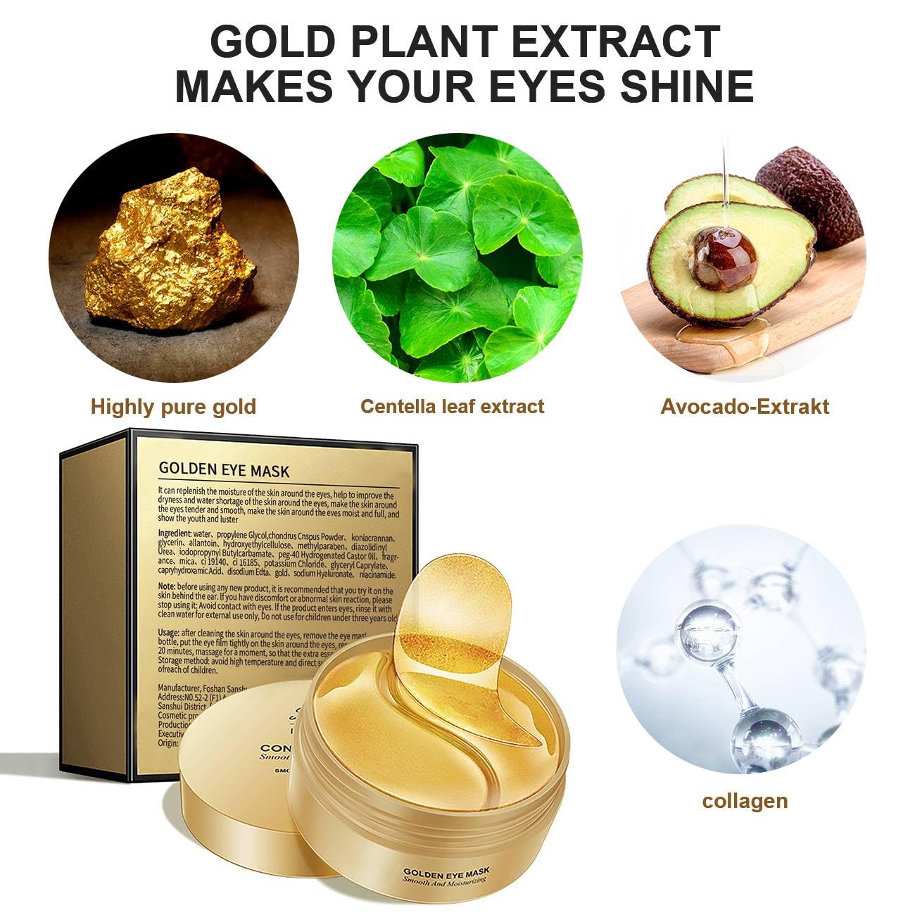 - 【Under Eye Patches】Eye patches with collagen as an anti-aging component prevent the formation of wrinkles,speed up the cell and collagen rejuvenation.Eye masks efficiently repair the damaged area under the eyes,making you appear brighter and younger.