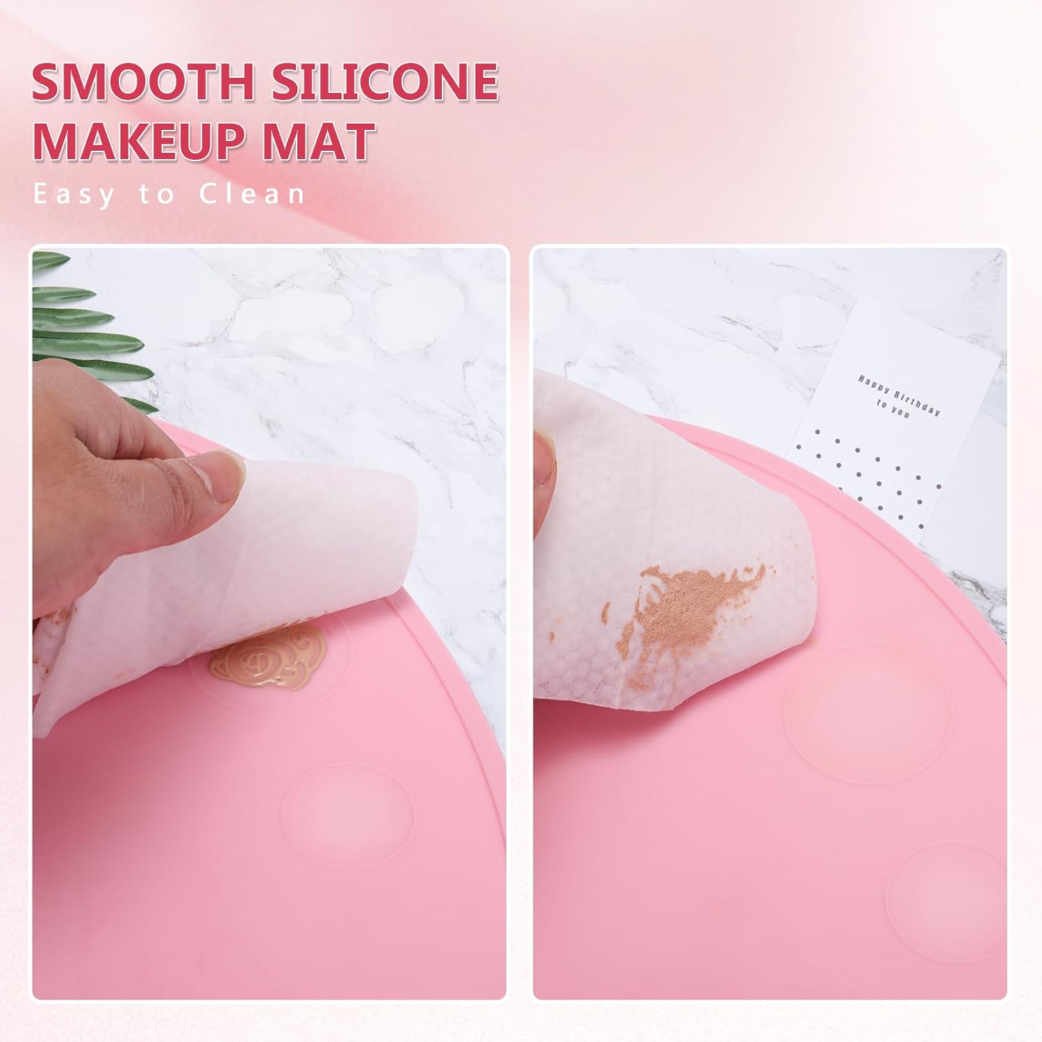 - 3 In 1 Makeup Tray: 2024 upgrade 3 In 1 design foundation palette with makeup brush cleaner pad and brush holder. The non-slip surface of this cosmetic pad keeps your makeup products in place and prevents spills and also keeps your makeup table looking neat and clean! The essential makeup supplies tool for every fashion makeup lover, professional makeup artist, or makeup learner.