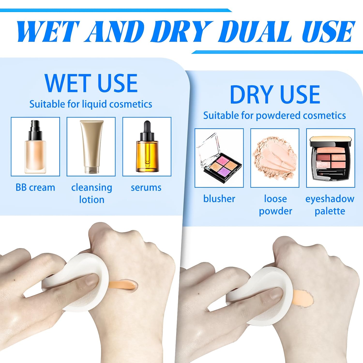 - Wet and Dry Dual Use: Both wet and dry application captures every detail to help you achieve a clean base. Suitable for powder, cream or foundation, can be used for all makeup types