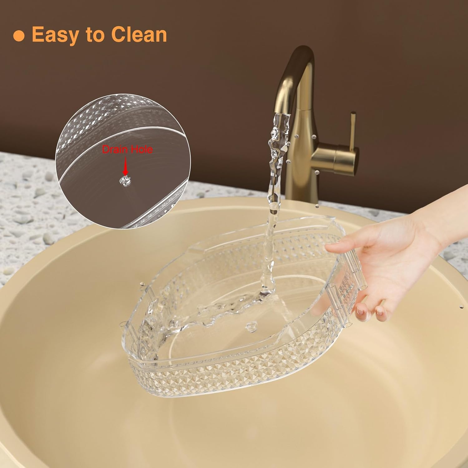 - Stackable &Adjustable:➤The lazy susan organizer is stackable if you get more Awenia clear bathroom countertop organizer and help you save 80% space.With separated top and raise,thicken edges, you can put long brushes,makeup bottle, don’t worry about falling. You can combine three adjustment plates of make up organizers according to your needs.
