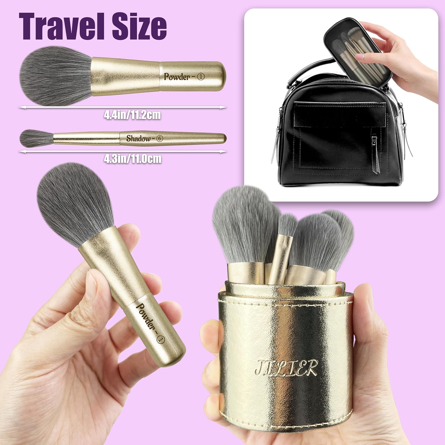 - 【Small and Compact Sizes】Jilier mini make up brush sets with case, LED lighted travel makeup mirror, easy to carry, suitable for travel or outdoor use, as well as daily makeup.
