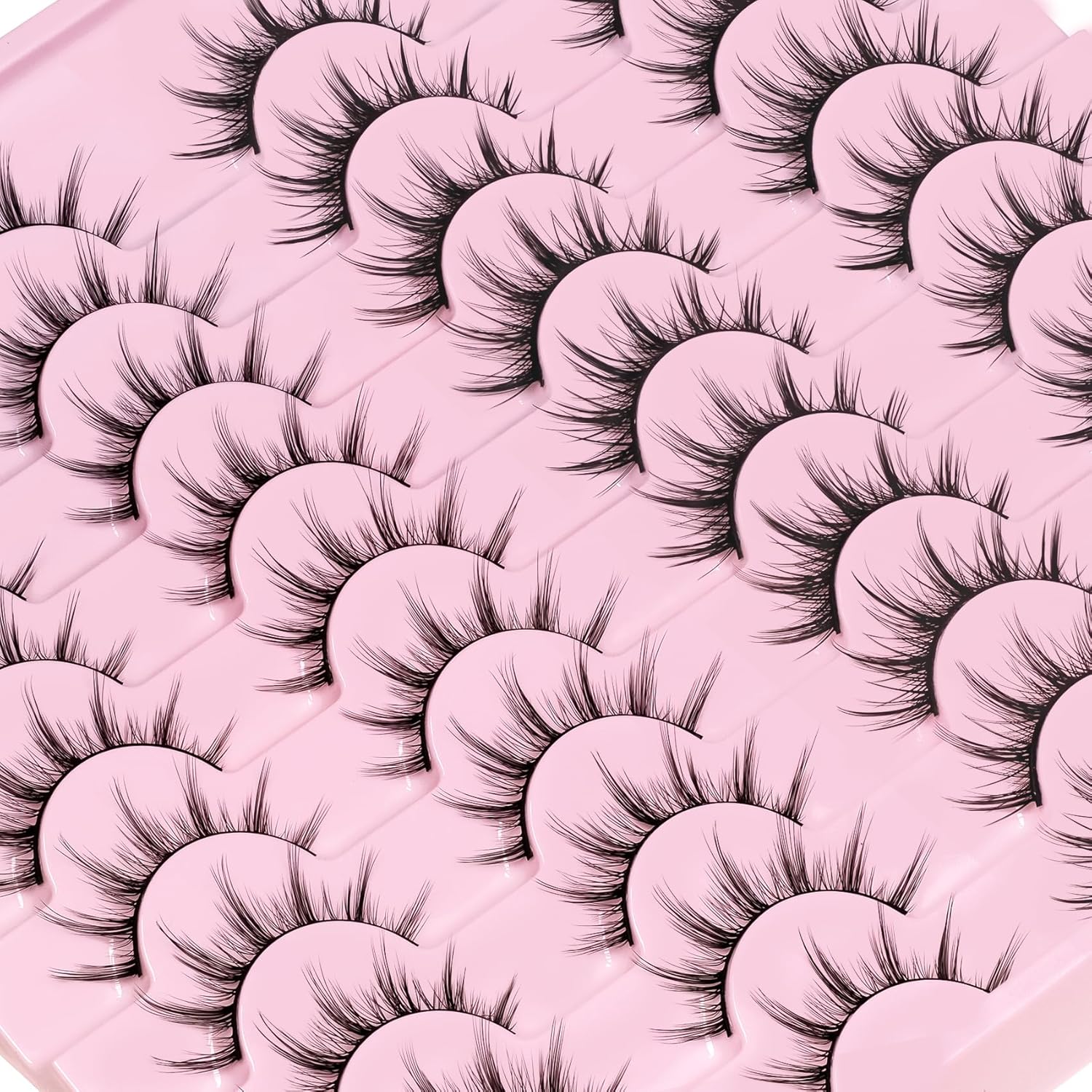 Losha Manga Lashes Natural Look Wispy False Eyelashes 20 Pairs 2 Styles Mixed Soft Fake Eye Lashes Pack Vegan Asian Anime Eyelashes (20P-Manga)