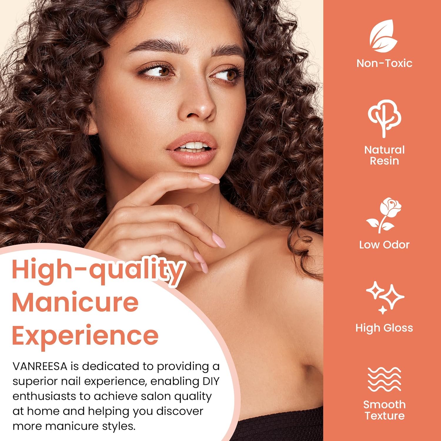 - ăHealthy & Long Lasting Manicureă VANREESA gel nail polish ingredients are made of natural resins, which are safe, non-toxic and low-odor, so you can use them with confidence. VANREESA gel nail polish is silky smooth, brightly colored and easy to apply, so even beginners can master its use. Prepare well before you start (shaping, buffing, cleaning) and follow the correct steps in the manicure instructions and your nail art will last for 21+ days!
