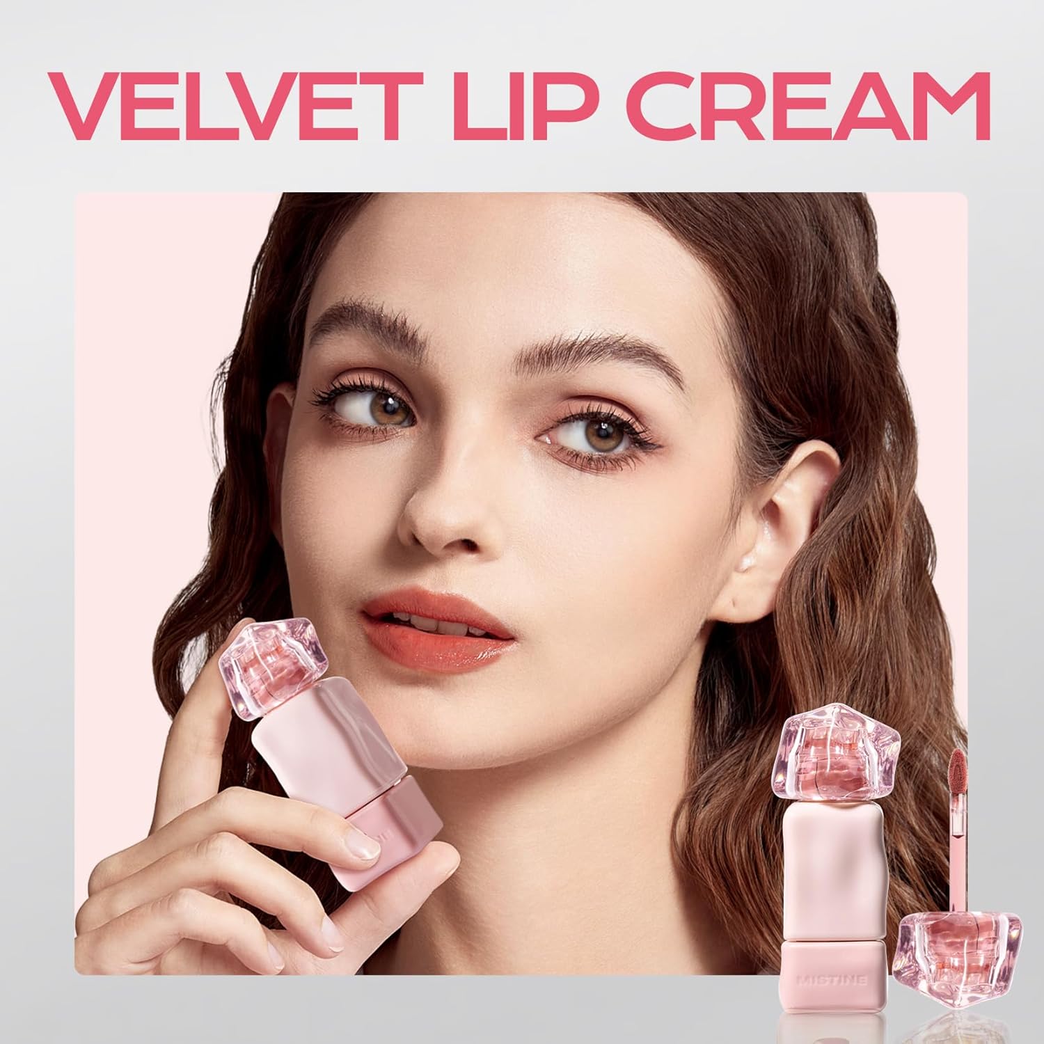 Mistine Makeup Velvet Lip Gloss Matte Lip Cream Liquid Lipstick Softening with Hyaluronic Acid Lip Tint, Non-Sticky Lightweight Lip Color V02 Pink Crush Limited Edition 0.1 fl oz