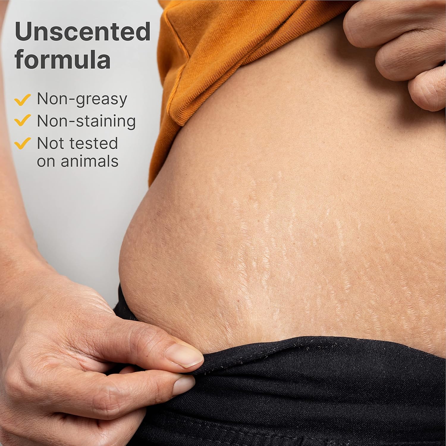 - UNSCENTED AND NON-GREASY: This intensive stretch mark lotion is odorless and fast-absorbing. It will leave your skin feeling moisturized and fresh without sticky residue.