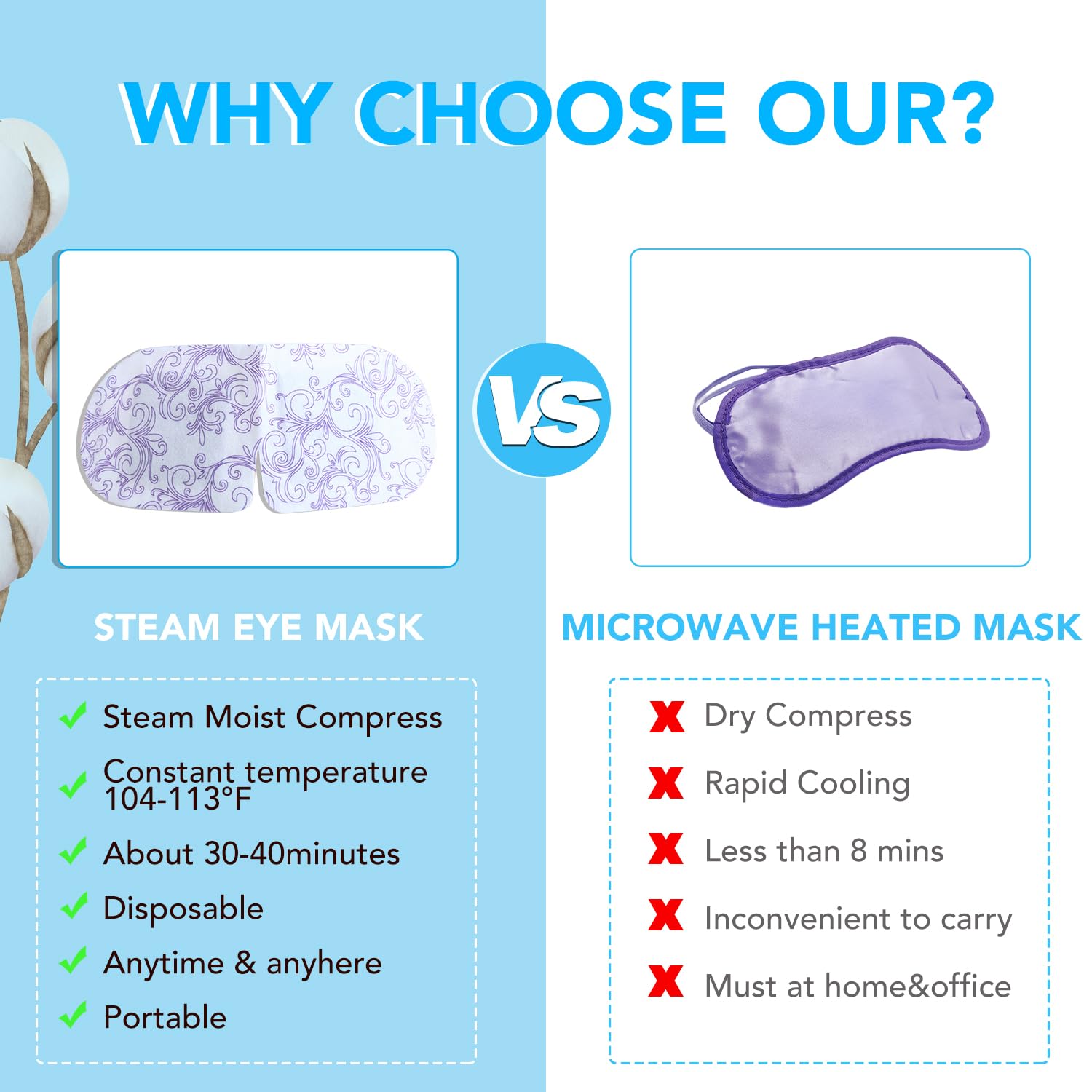 - 【Enjoy anytime, anywhere】The Disposable Self Heating Moist Heat Eye Masks adopts a disposable design and independent packaging, making it clean and convenient to use. Suitable for office workers, students, businessmen, etc. You can take eye spas at any time: sleep time, leisure time, lunch break time, flight or train travel time, office rest time.