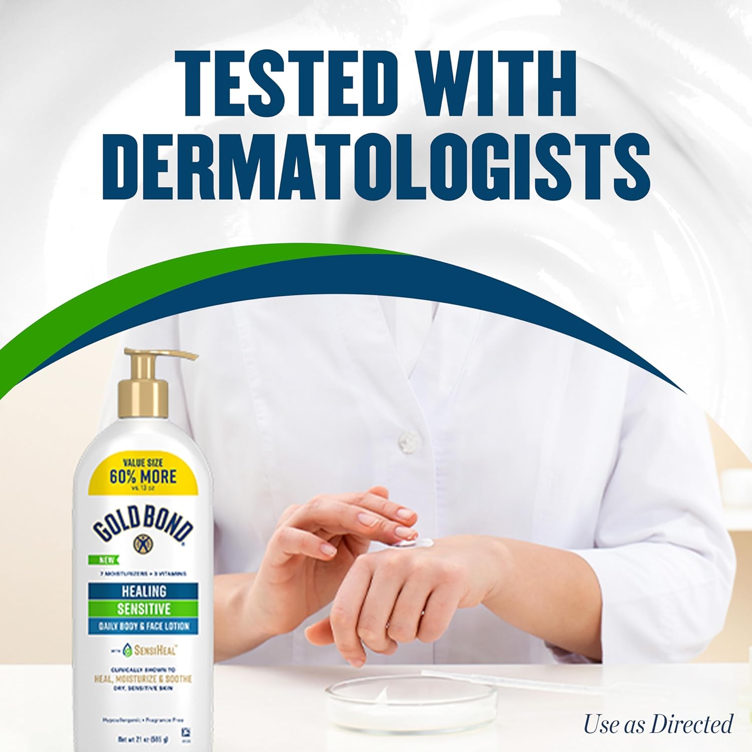 - Includes one (1) 21-oz. pump bottle of Gold Bond Sensitive Healing Daily Body & Face Lotion