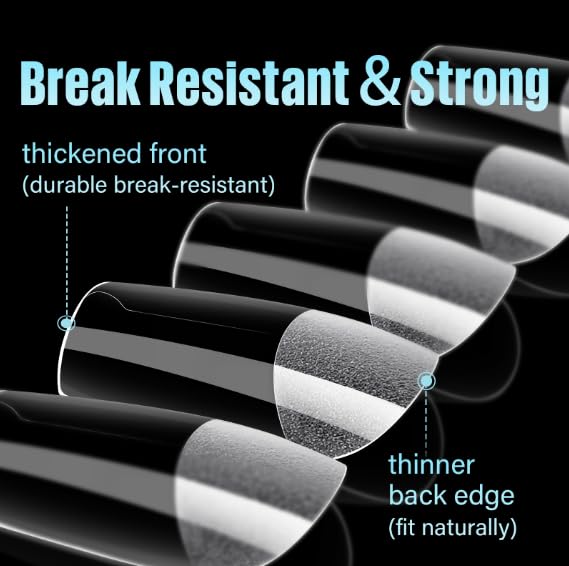 - 【Durable and Break-Resistant】TOMICCA nail tips are crafted from traceless acrylic material, known for its durability and resistance to breakage. These thin yet robust tips are non-toxic and odorless, ensuring no harm to your nails. The pre-shaped design significantly reduces the time spent on nail shaping, making the nail art process more comfortable. Enjoy a long-lasting hold for up to 21 days with proper application.