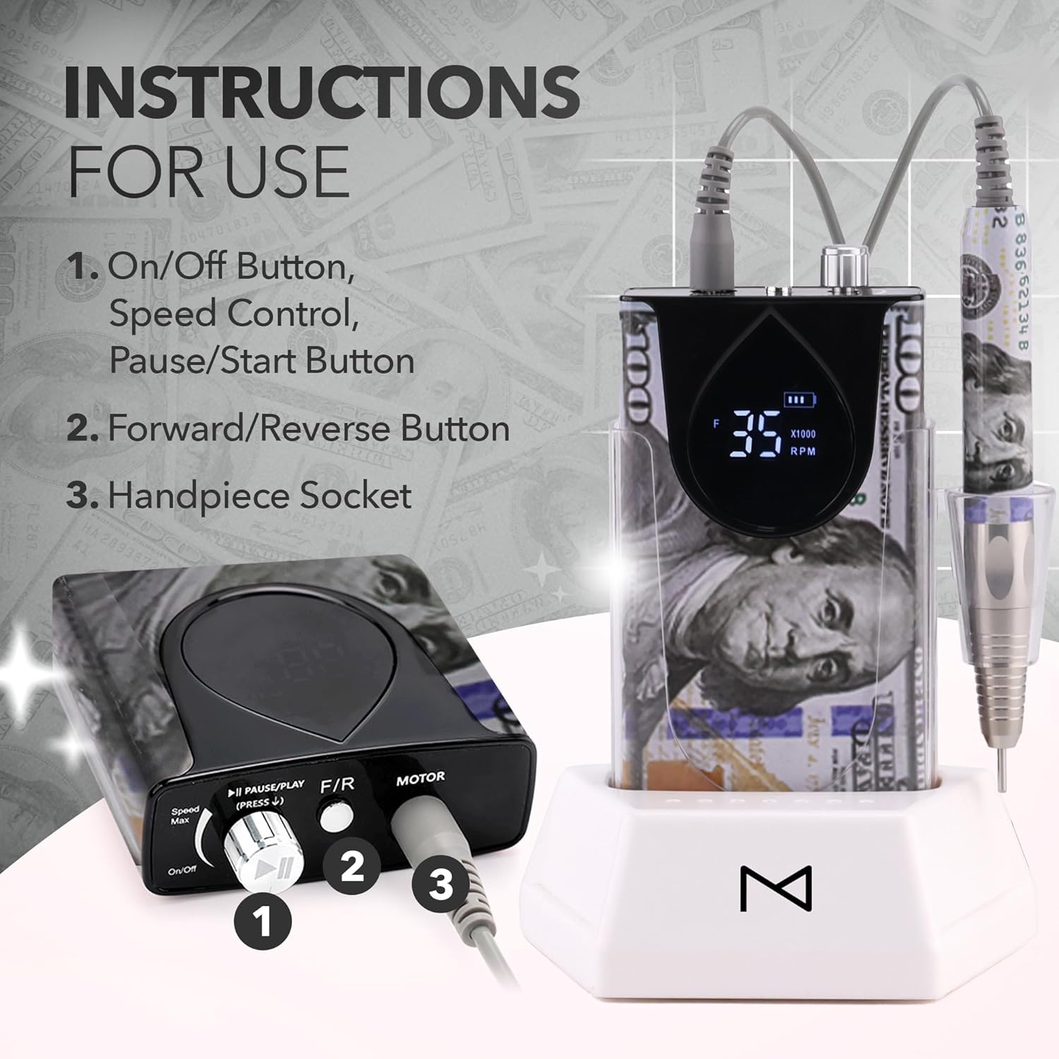 M Max - Nail Drill Professional - 2-in-1 Brushless Motor Nails Drill Machine - Electric, Cordless, Aluminium Alloy Casing, 35000 RPM, HD Display - Perfect for Salon & Home Use Special Edition - Money