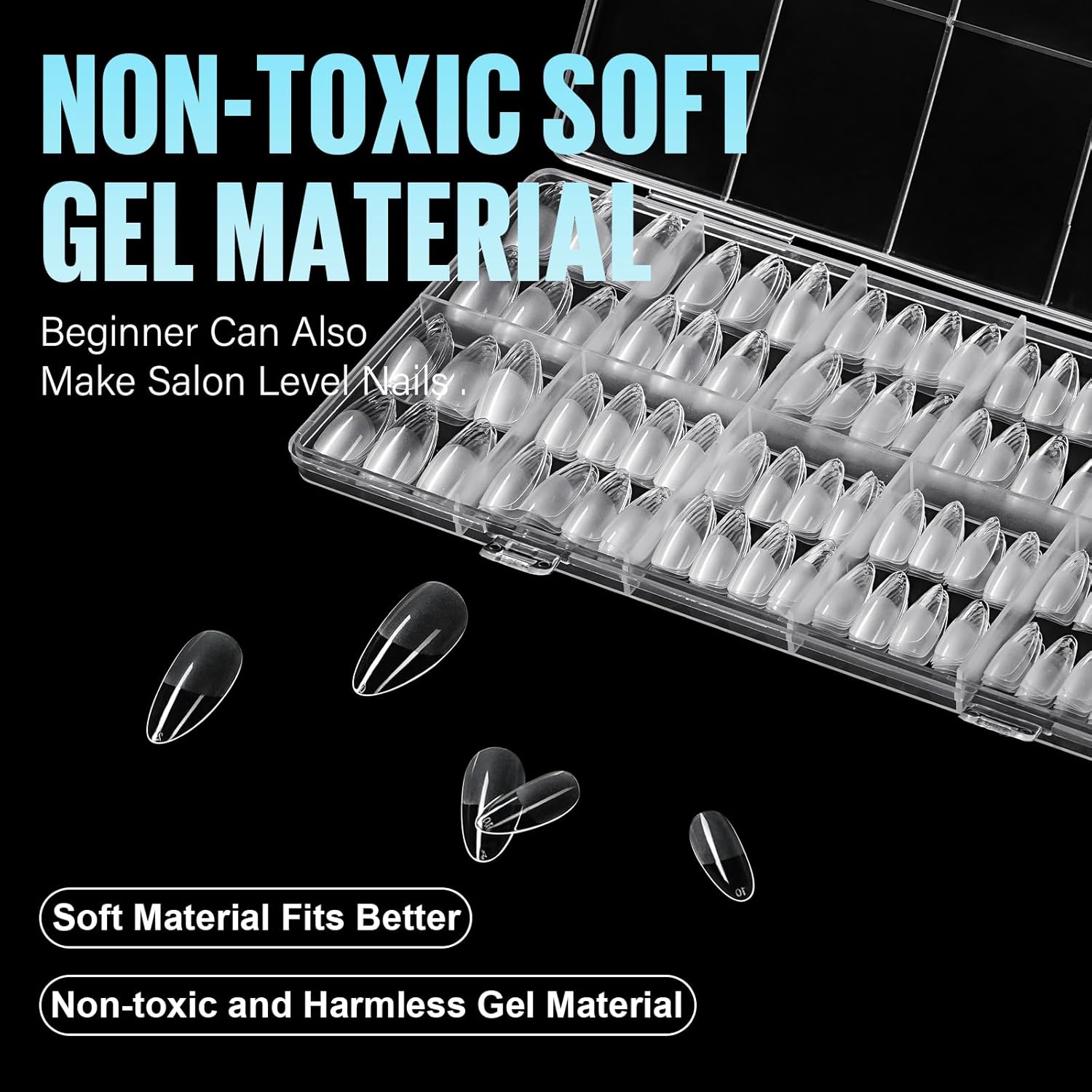TOMICCA Medium Almond Nail Tips, 504Pcs Soft Acrylic Pre Etched Clear Fake Nails Tips Almond Shape Half Matte, Full Cover Nail Extension for Beginner and Professional 12 Sizes