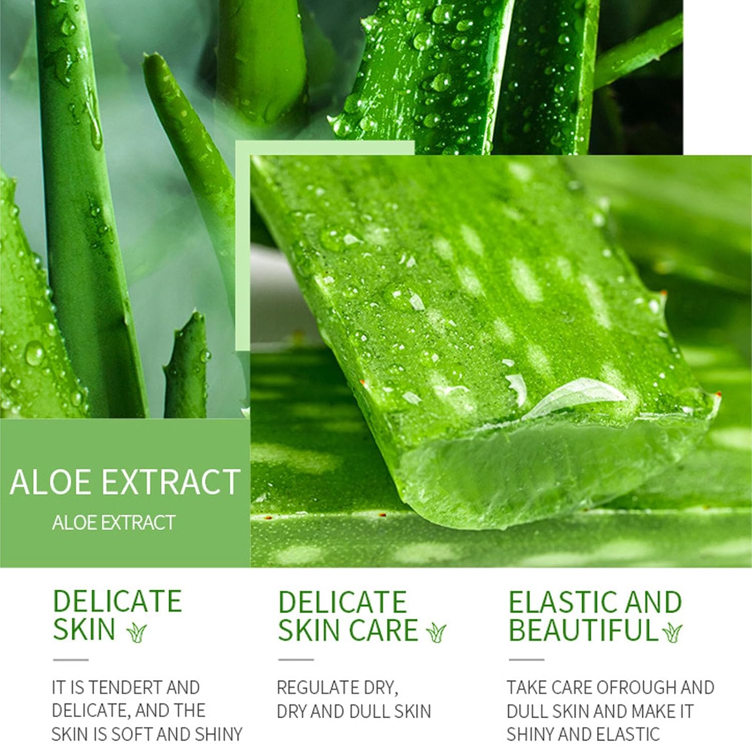 - Product Benefits : Aloe Vera skin care set improves skin hydration, repairs skin barrier, balances skin moisture, and suits all skin types, providing a light, refreshing, and fast-absorbing skincare solution. Aloe Vera skin care set improves skin hydration, repairs skin barrier, balances skin moisture, and suits all skin types, providing a light, refreshing, and fast-absorbing skincare solution.