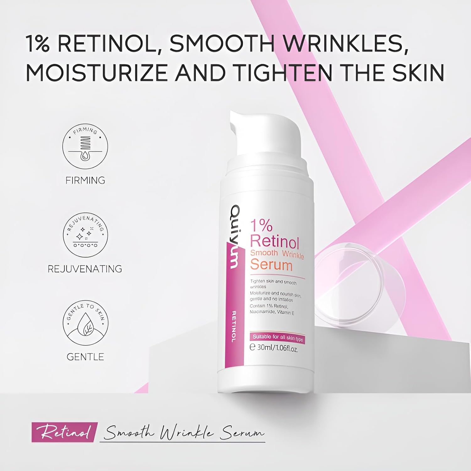 - 【Anti Aging Skin Care Set】Retinol Anti Aging Starter Kit includes 1% Retinol Serum for Face and Anti Wrinkle Smoothing Face Moisturizer. Anti Aging Skin Care Set for Women targets the main signs of skin aging, effectively reducing wrinkles, firming contours and evening out skin tone for a more youthful and radiant complexion. Whether you want to prevent signs of aging or address existing concerns, our anti aging skin care set provides a customized solution for your skin needs.
