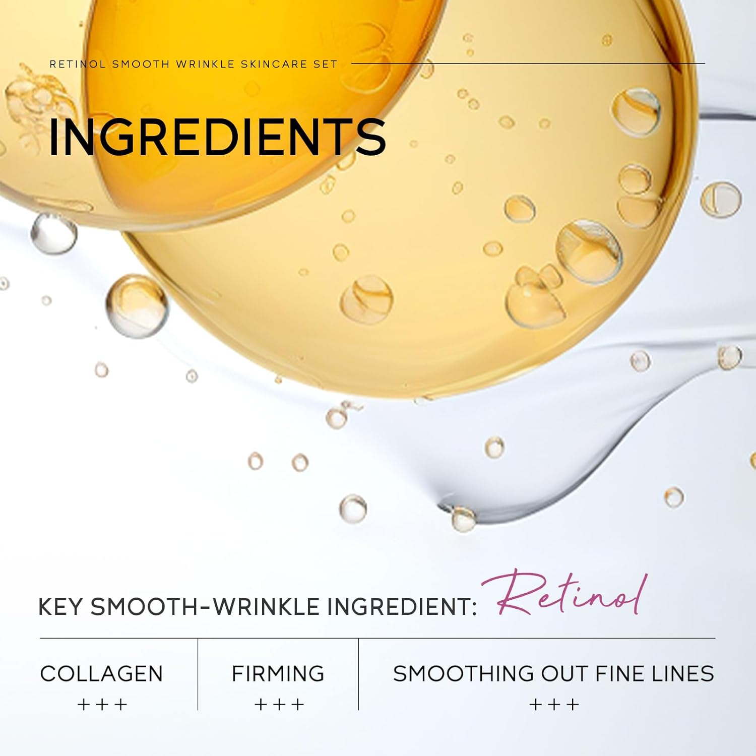 - 【How to Use】After cleansing, apply 2-3 pumps of Retinol Serum to your face and gently pat with your fingertips to aid absorption. Follow with the Retinol Wrinkle Smoothing Moisturizer. For optimal results, use these products in your nighttime skincare routine. If using during the day, remember to apply a facial moisturizer with SPF 30+ to protect the skin from sun sensitivity.