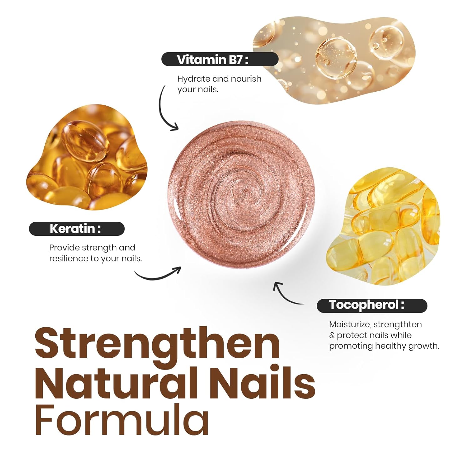 - Nail Care Ingredients:This healthy nail polish formula contains at least 3 ingredients to protect nails, which can strengthen and thicken nails and accelerate nail repair, so that your nails have a beautiful appearance and also make your nails healthier