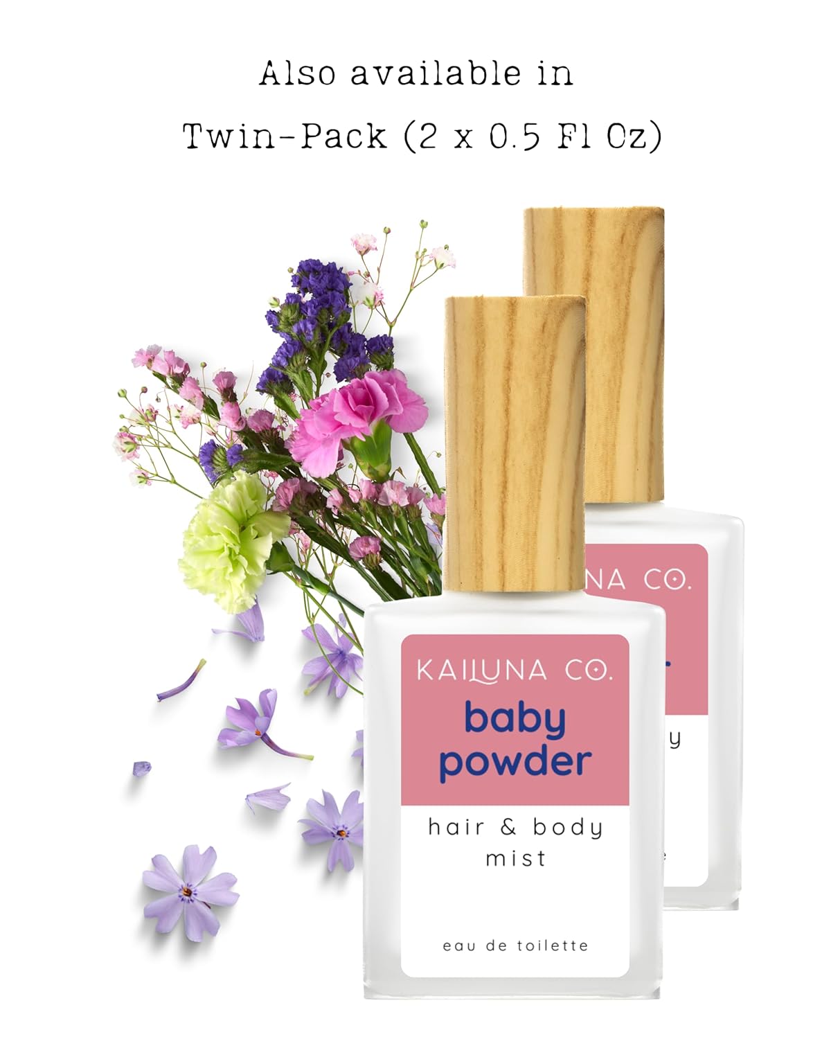 Baby Powder Natural Hair & Body Mist Spray, Pure Essential and Fragrance Oils, Alcohol-Free, Handmade in California, 0.5Fl Oz