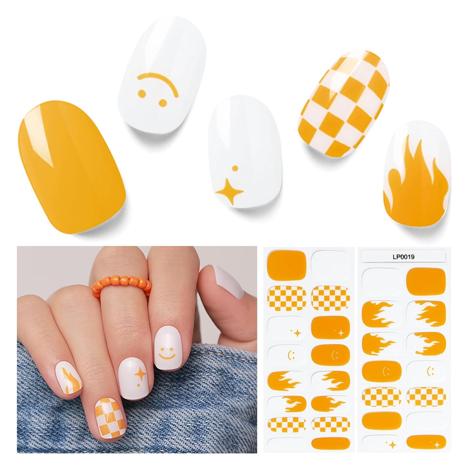 - 【SAFE & HEALTHYT】The gel strips do not contain poisonous or hazardous materials. It makes use of odorless, non-toxic ink, premium polymer gel, and non-irritating glue. The glue on the reverse of the gel nail strips is adhesive, won't easily peel off, and won't harm your nails, so you may use it without risk.