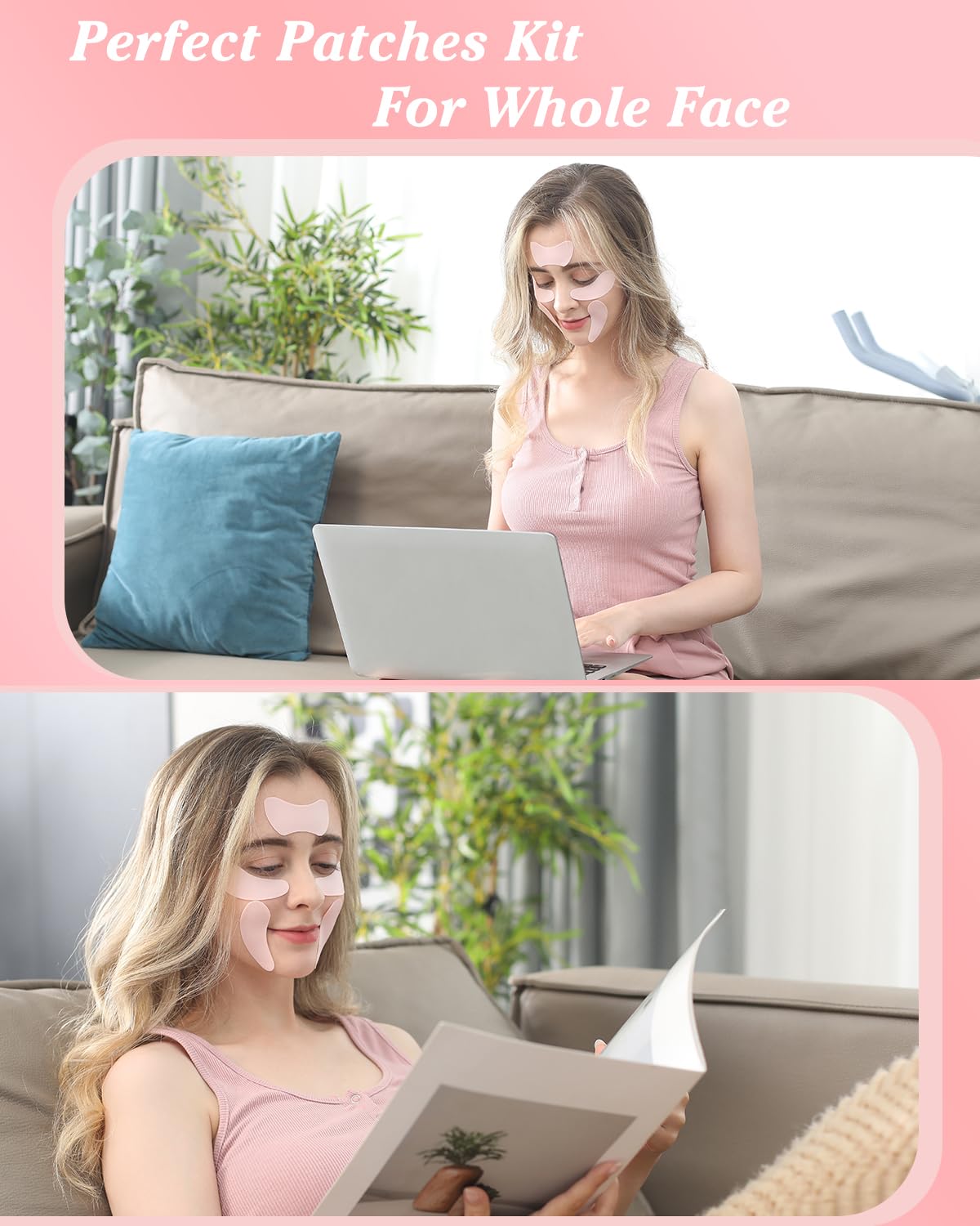 Reusable Eye Patches for Wrinkles Under Eye Patches Silicone Remove Forehead Wrinkles Smile Line Patches Kit (Pink)