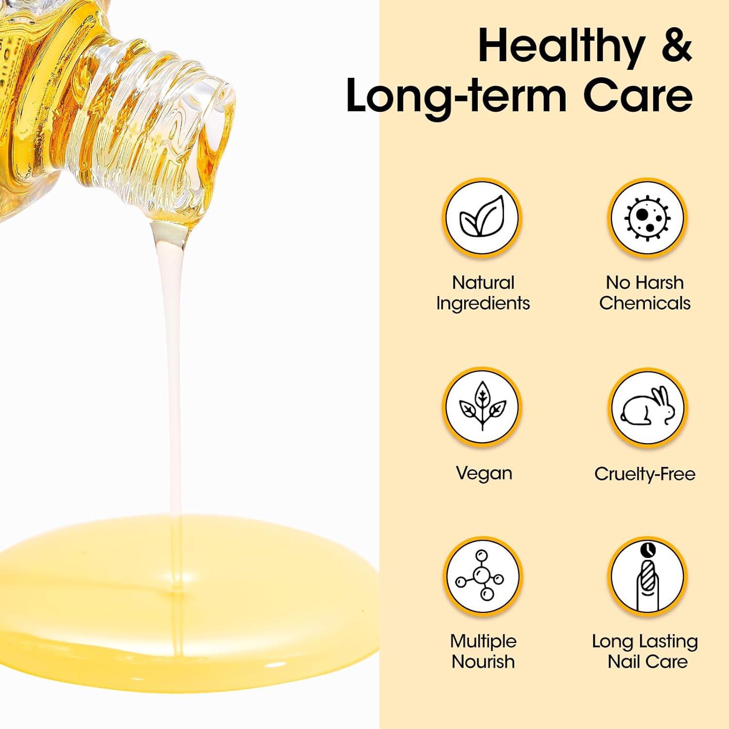 - Notice: Skin test before using is necessary. The slight stickiness after curing the base coat is normal and essential for long-lasting results. DO NOT WIPE! Gently massage the oil into the cuticles and nail bed to promote blood circulation and stimulate nail growth. If you have any issues, please contact us anytime!