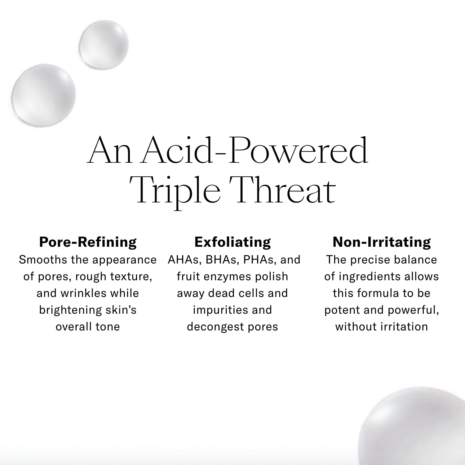 - Triple Hydroxy Resurfacing Liquid - This formula can help refine pores and rough texture. By optimizing AHAs, BHAs, and PHAs with fruit enzymes, skin is renewed and transformed through exfoliation of dead skin and impurities, decongestion of clogged pores, and gentle polishing of the skinβs surface.