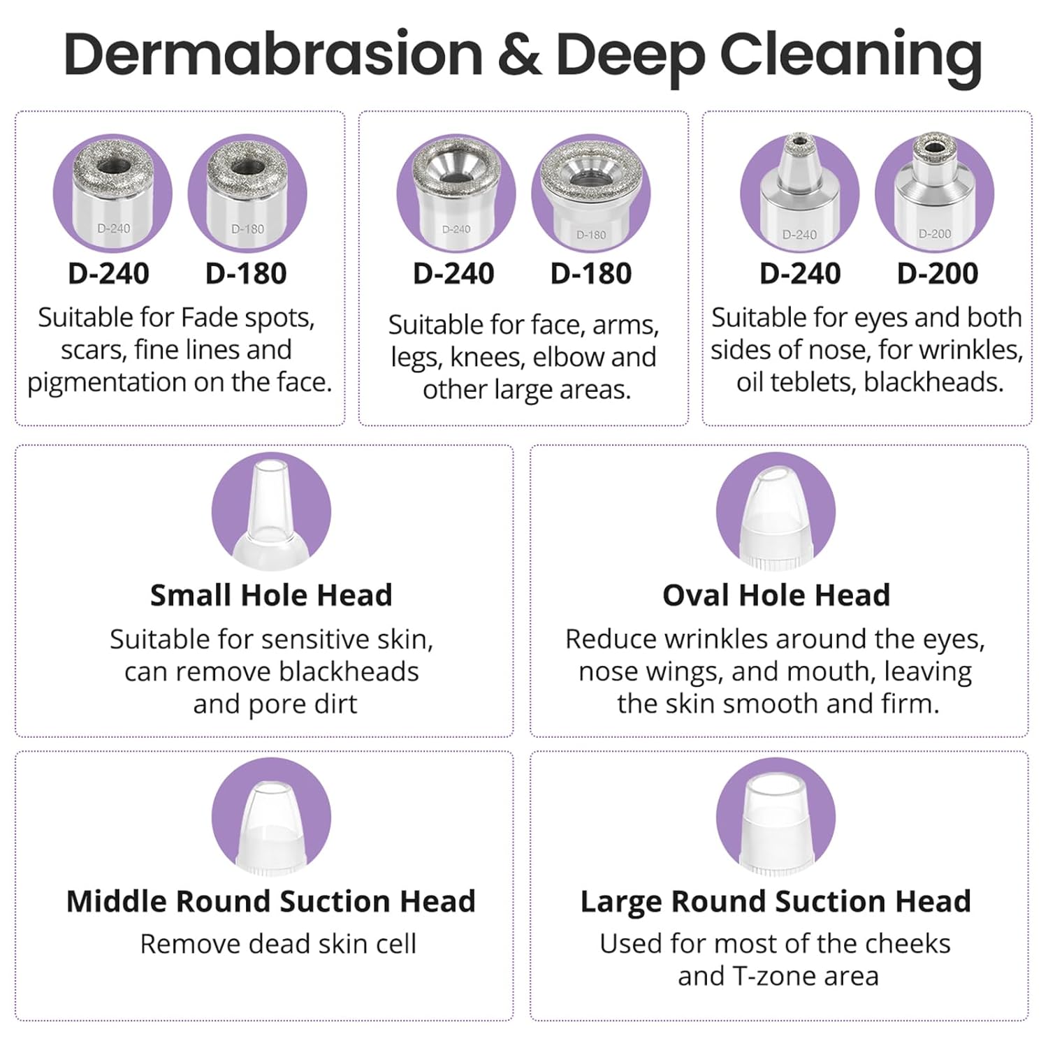- šš²š»šš¹š² šš²š šš³š³š²š°šš¶šš²: Concerned that the suction might be too strong and cause abrasions? Put your worries aside. This microdermabrasion tool is safe and gentle for all skin types. It features 3 adjustable suction levels, We would recommend starting with the lowest suction level until you are more familiar and comfortable with using the microdermabrasion tool.