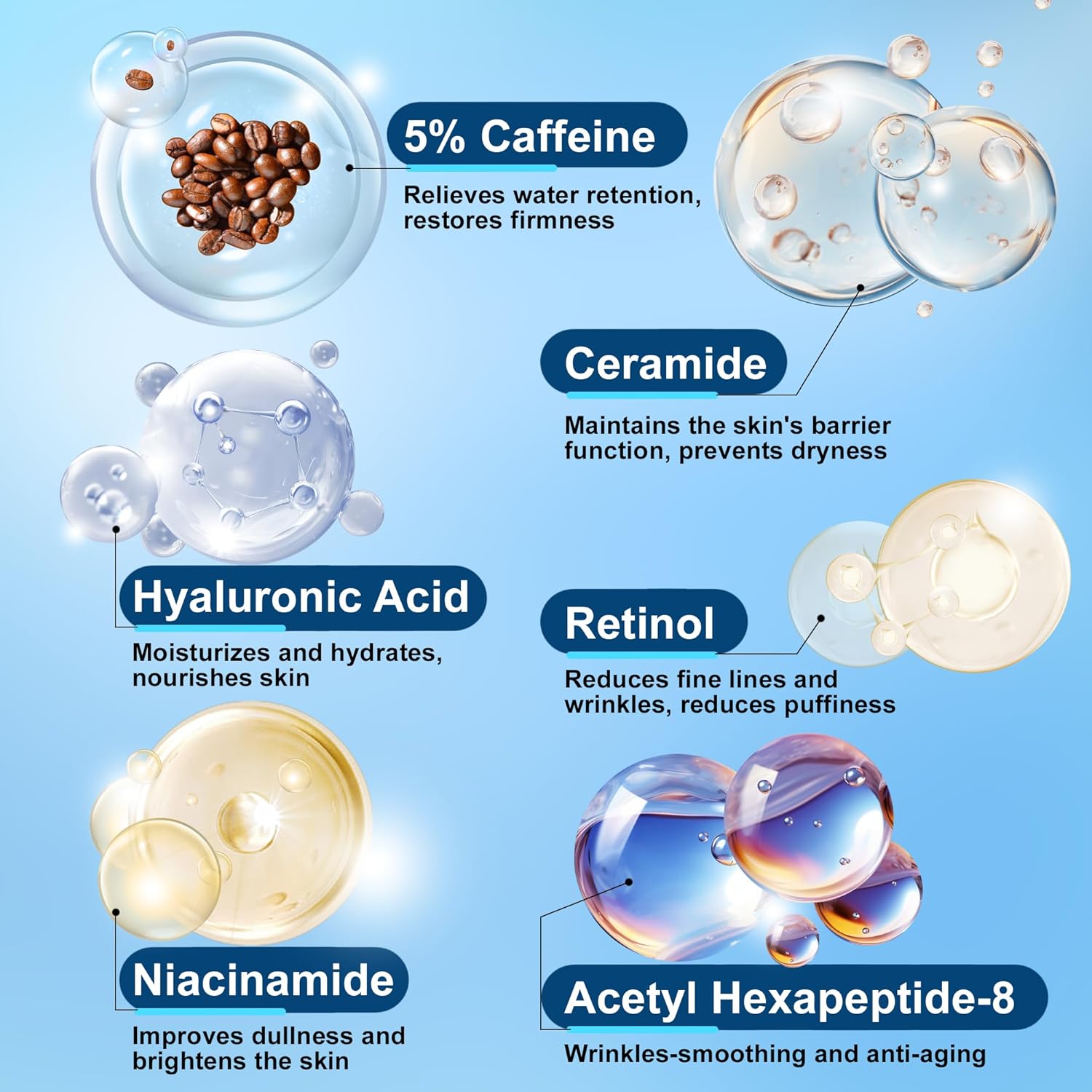 Caffeine Eye Cream for Dark Circles: Under Eye Serum for Puffiness Bags Daily Care before Dates Parties Women Men