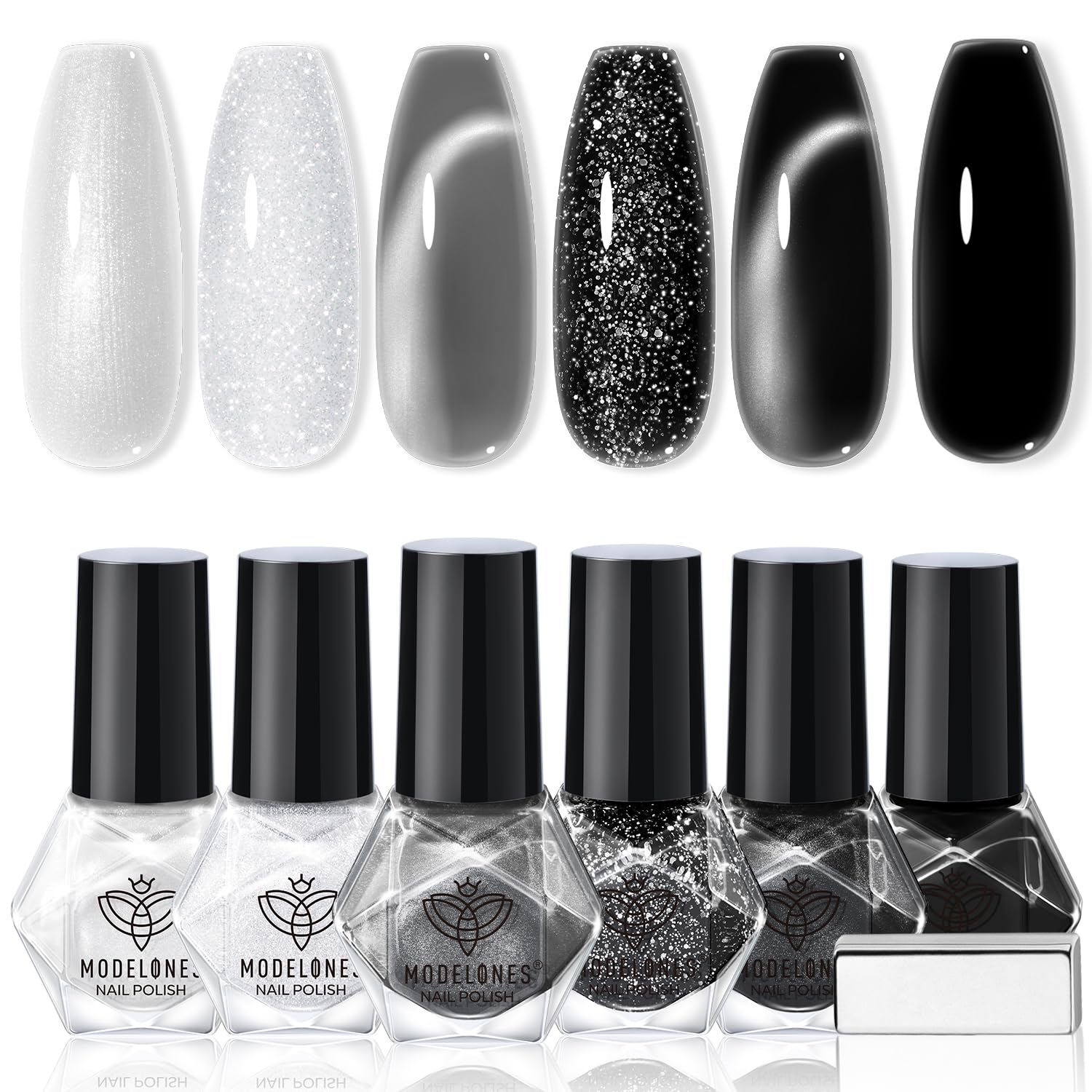 - 2025 Fashion Nail Polish Set: Modelones nail polish set offers a stunning range of 6 white & black colors. This nail polish set is perfect for all seasons and it must-have for your seasonal nail collection, suitable for any occasion