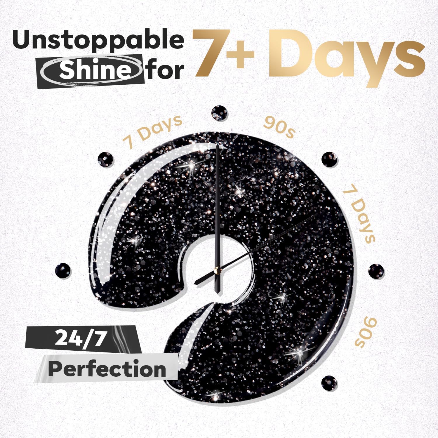 - 7+ Day Long Lasting Manicure Kit: Salon-Gloss finish in 10 minutes with a 150Β°wide easy-slip brush and its own Formula. Ensuring your manicure stays flawless in 7+ days. Enjoy creating the perfect manicure at home with ease