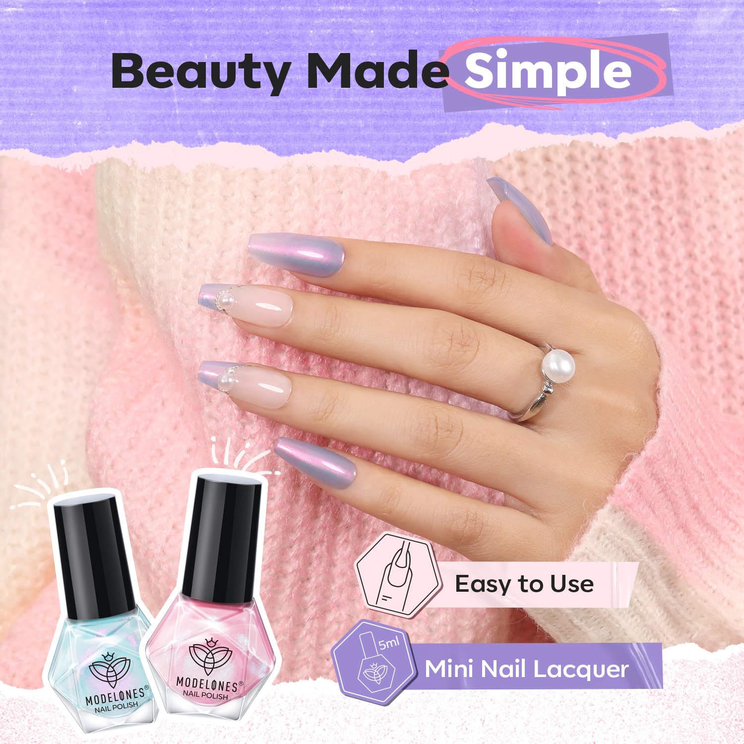 - 2025 Fashion Nail Polish Set: Modelones Shimmer & Holographic Colors Nail Polish Set offers a stunning range of 6 charm colors. This nail polish set is perfect for summer and it must-have for your seasonal nail collection, suitable for any occasion