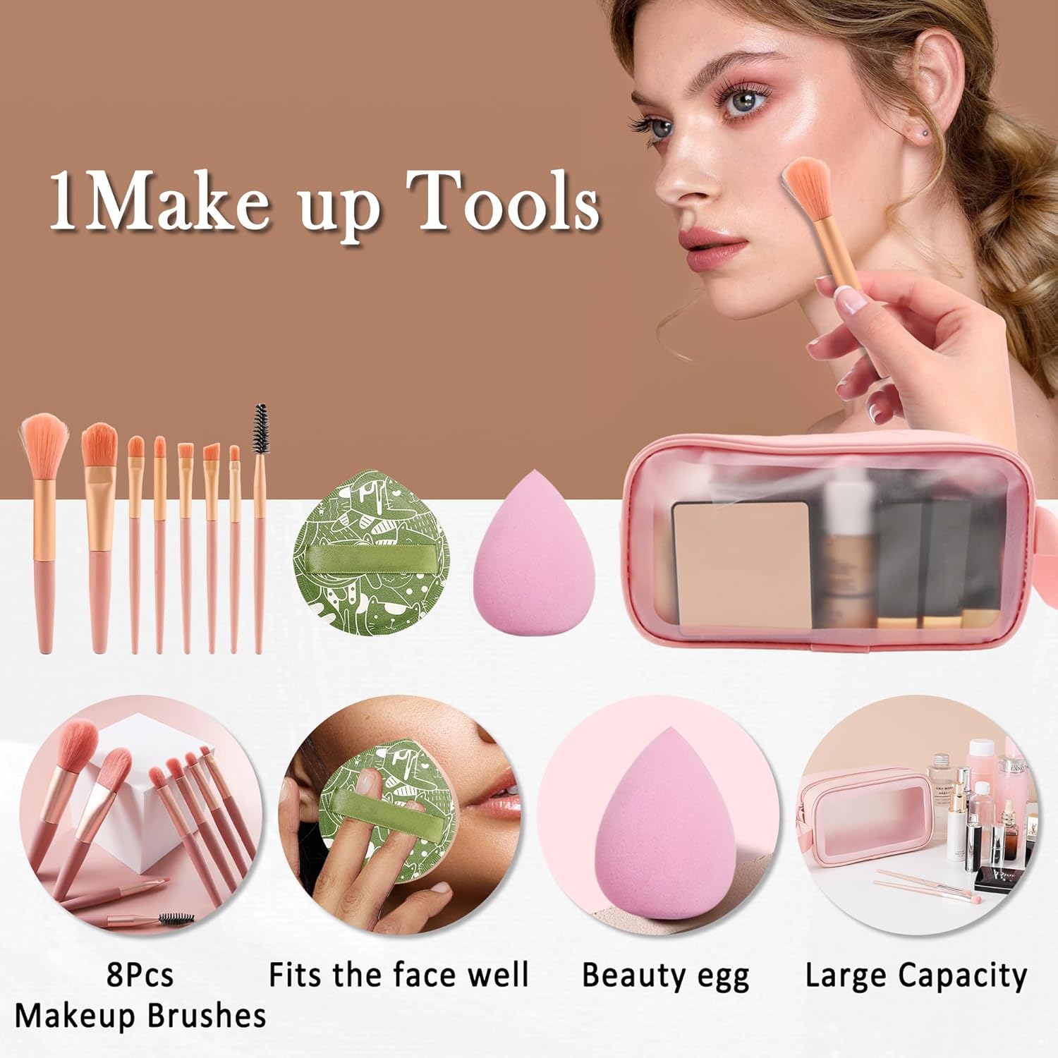 - All in One Makeup Kit - This makeup set contains two bottles of foundation, mushroom air cushion, two eyeshadow palettes, lipstick set, blush touch-up, makeup setting products, eyebrow pencil, stamped eyeliner, 5D mascara, makeup brush set, makeup bag and more. Each product has been carefully selected to ensure that the entire set is coordinated and practical. We also offer three combinations for you to choose from according to each individual's needs.