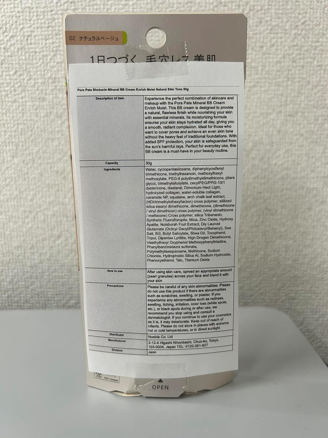Pore Pate Shokunin Mineral BB Cream Enrich Moist Natural Skin Tone 30g, 1.06 Ounce (Pack of 1)