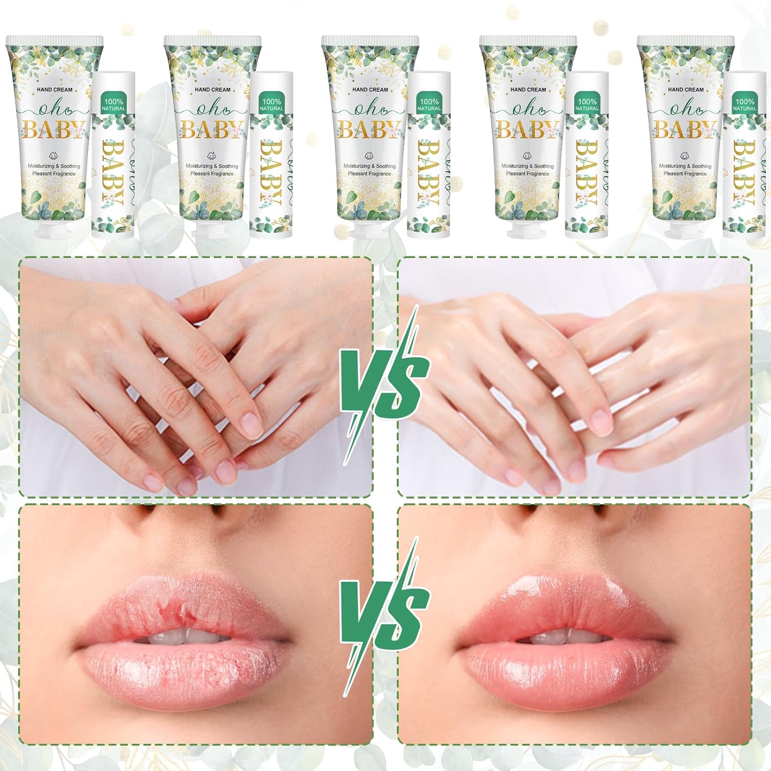 - 【Baby Shower Thank You Gifts】Our hand cream and lip balm is designed with green eucalyptus leaves,symbolizing the gifts of nature and the beauty and happiness in life.The golden"Oh Baby"lettering perfectly fits the theme of the baby gift party.It's an excellent gift to give to customers as a thank-you gift
