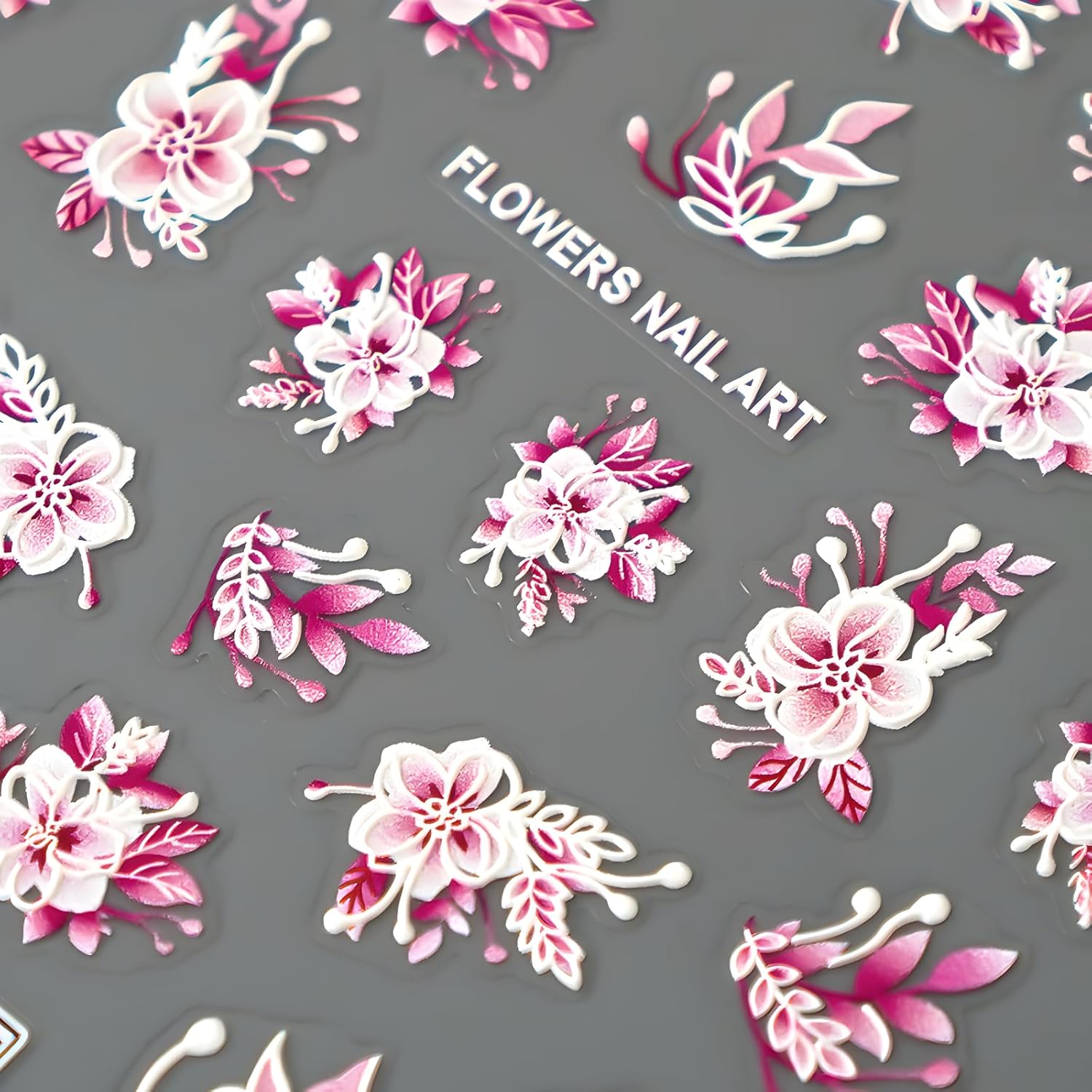 Pink Flowers Nail Art Stickers 5D Embossed Self Adhesive Nail Decals Spring Summer Nail Stickers for Nail Art Flower Nail Design Decoration Accessories for Women and Girls