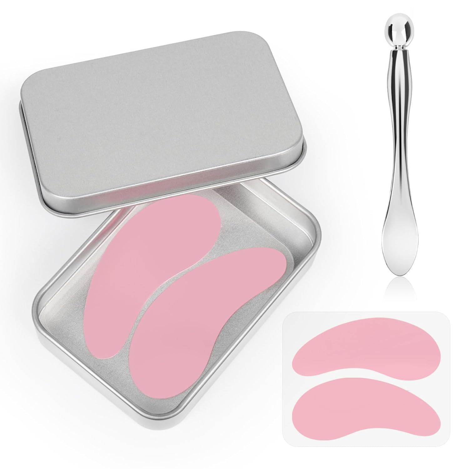 Under Eye Patches Silicone - 2 Pcs Reusable Eye Patches, Eye Patches Plump Fine Lines & Wrinkles with Metal Eye Cream Applicator, Tin Case