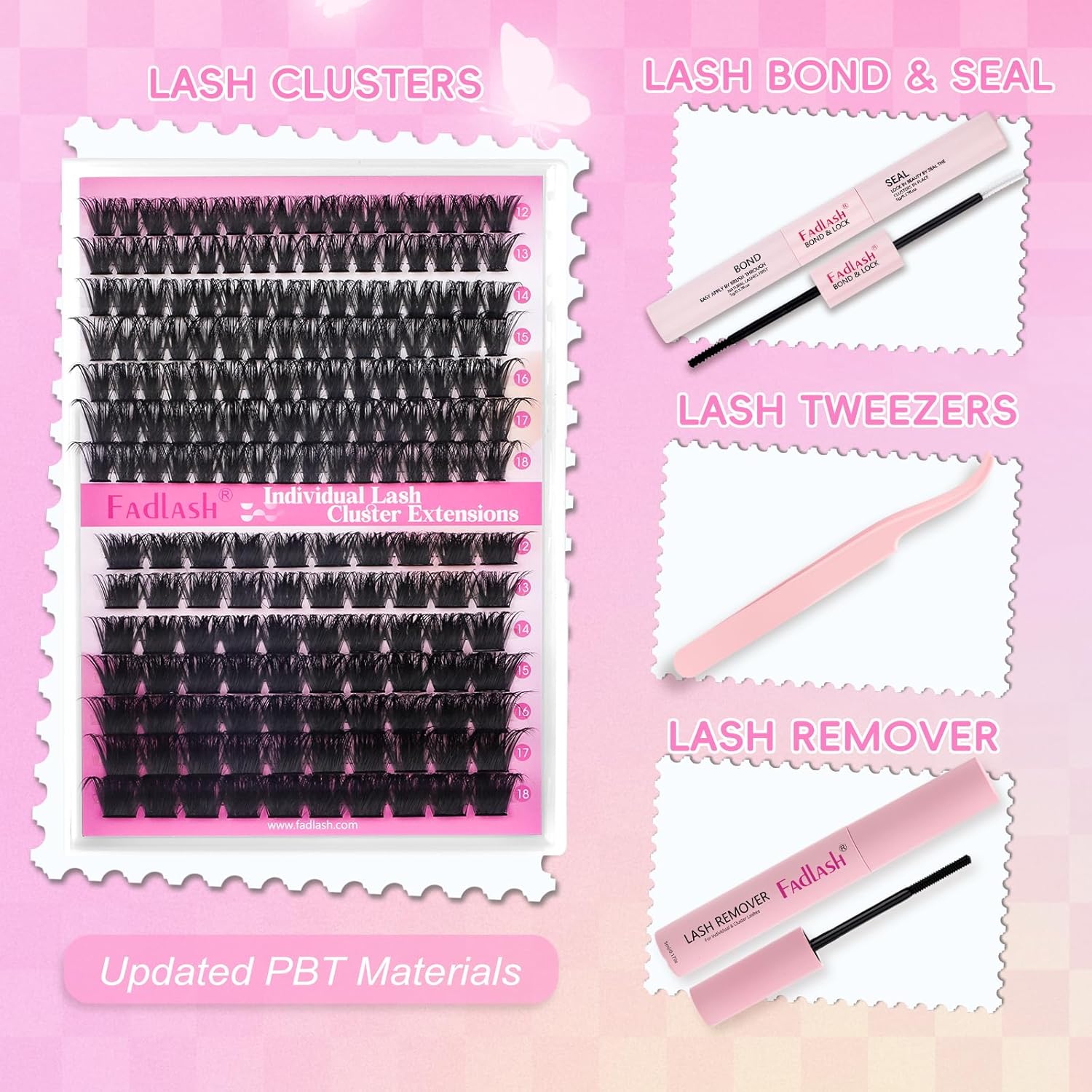 - 【DIY lash extension Kit】:DIY lash extension kit includes:1 tray mix length cluster lashes,1 lash bond and seal(2 in 1),1 Cluster Lashes Glue Remover1 lash applicator tweezer. Our DIY lashes kit includes all the necessary tools. Achieving the perfect extension look with our DIY eyelash extension kit